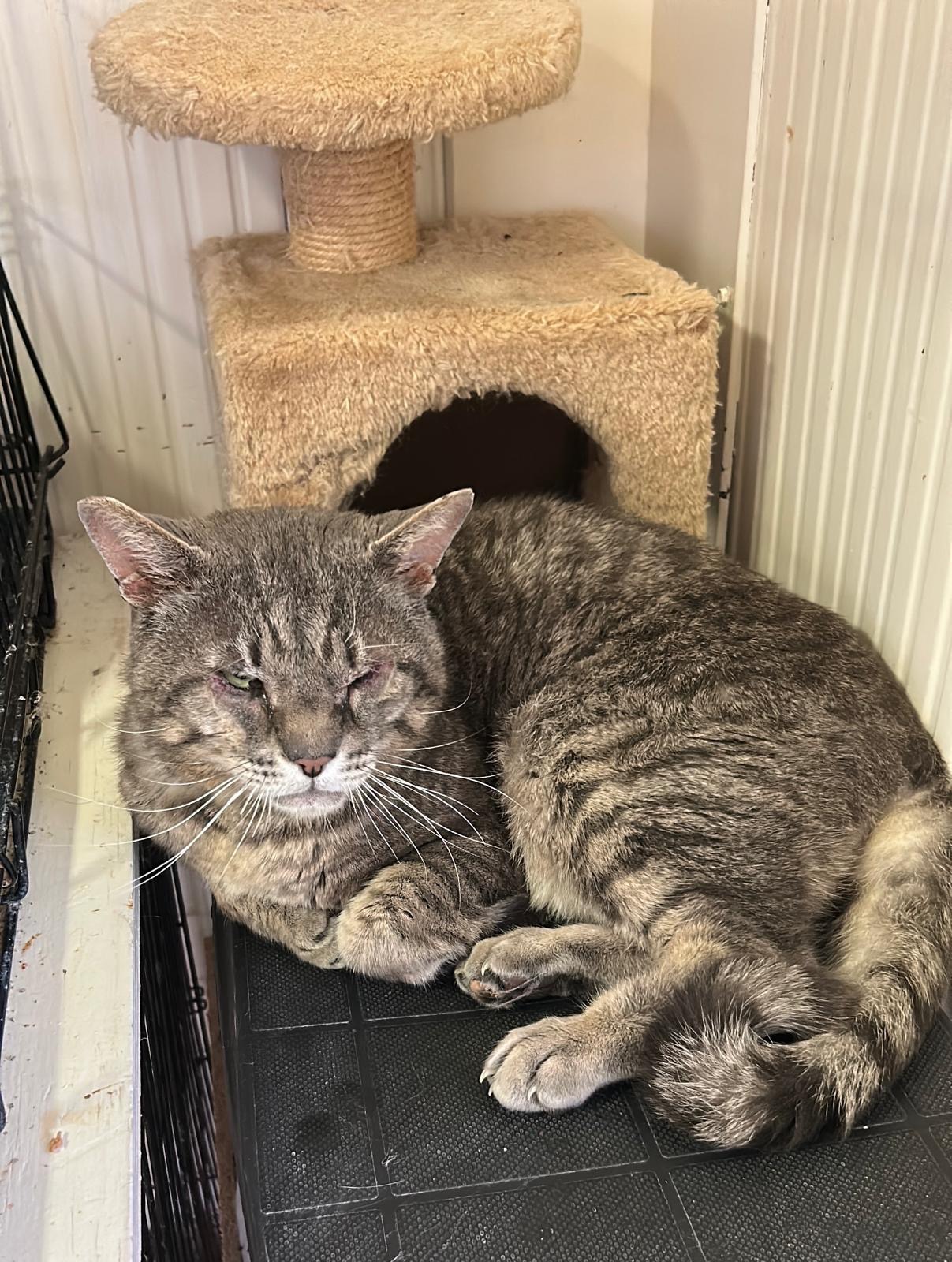 KASANOVA - raccolto in colonia perché costantemente bullizzato dagli altri gatti. Ha un entropion bilaterale (la palpebra ripiegata in dentro) - che ha richiesto vari interventi per circa 800 euro. Lo stress della situazione gli ha anche causato una cistite che complica il quadro clinico e aumenta i costi.