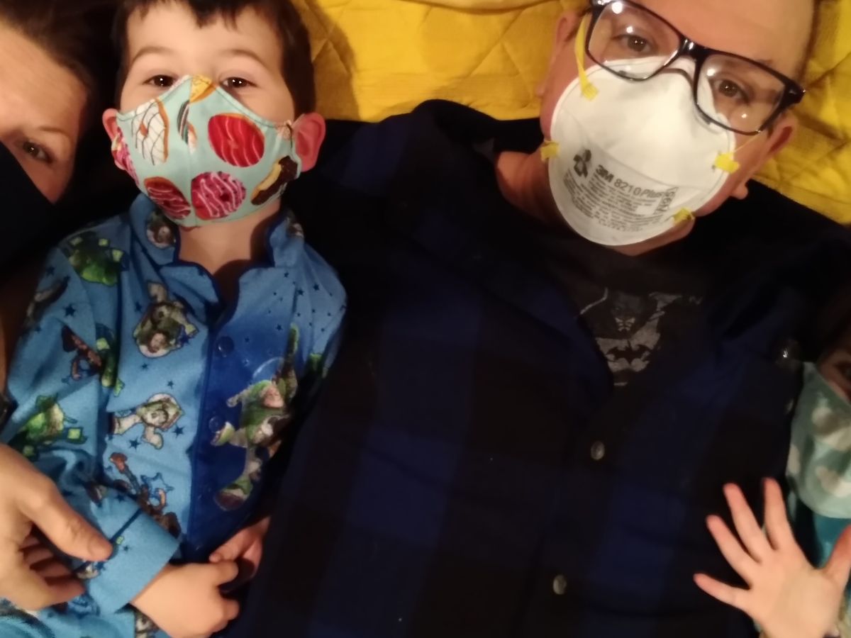 Erik is presently living isolated at home; with his compromised immune system, he has high risk of becoming ill. The family has learned to navigate with masks and distancing at home together, which is not alway easy for the little ones.