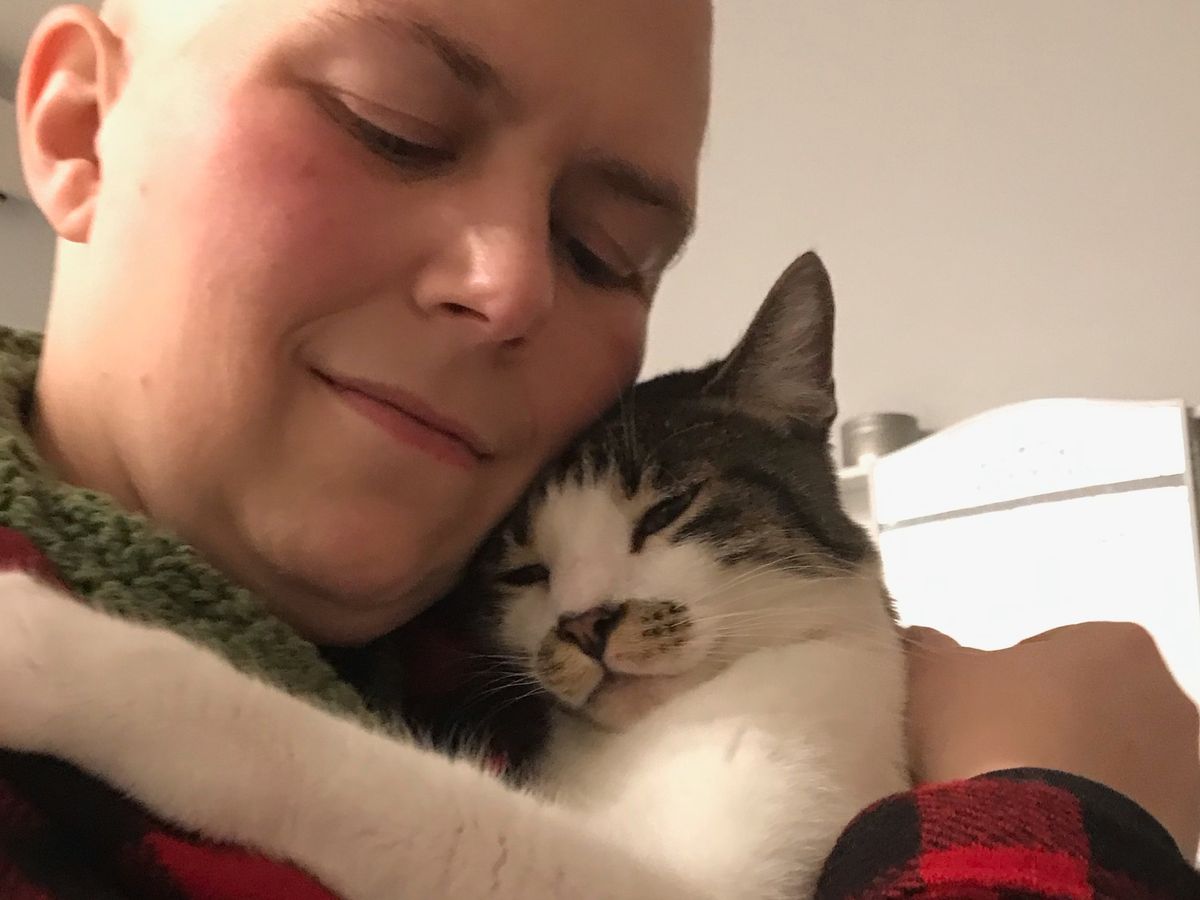 “Living with cancer has defined my entire adult life. I’m 17 years in, with most of that time in some form of treatment. I am grateful to have survived long enough to be receiving a new form of immunotherapy treatment and one round in I can say that this treatment, while still awful, is not the absolute worst I’ve experienced. I’ve been nauseous everyday since the first day of chemo back in November, but at least I’m not puking! And I am bald from chemo for the 4th time, but so far I still have eyebrows!”