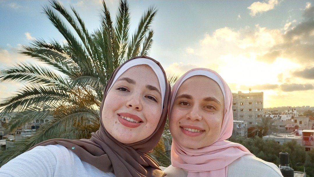 This me Nadia and Rania with my hometown Biet Hanoun