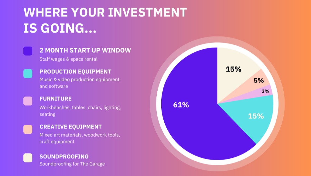 The Garage is a space for messy, noisy, techy creation. From music & video production to woodwork, painting and gaming, the vibe is BIG, the resources are top notch and we have a long line of experts from creative industries waiting to get involved with us.