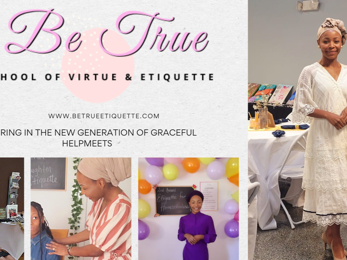 My name is Shanelle, Etiquette Consultant, and owner of Be True School of Virtue and Etiquette, LLC. An Educational Institute for Girls and Women of Faith who desire to become the absolute best versions of themselves. We assist girls and women along their personal journeys to becoming cooperative, feminine, refined individuals and members of society.