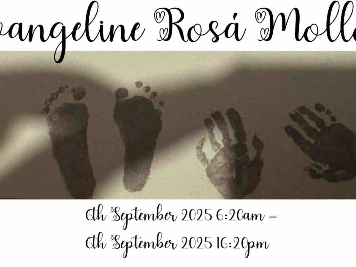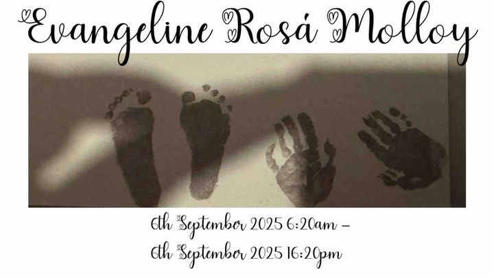 It breaks our hearts to share the most devastating news we could ever imagine. Our precious little girl, Evangeline Rosá Molloy, was born far too soon on 6th September 2025 at 6:20am, weighing only 11oz. Though she arrived four months early, in her tiny body she carried a strength beyond measure.