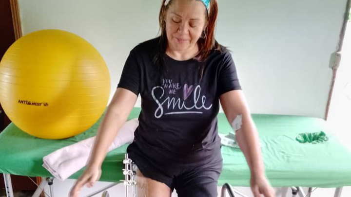 Durante su hospitalización, contrajo una bacteria intrahospitalaria muy agresiva llamada Pseudomonas, que aún hoy permanece en su cuerpo. Esta infección ha impedido su recuperación y le ha causado un deterioro progresivo y muy doloroso. Mi mamá no ha podido volver a caminar, y ahora su situación es crítica. Necesita ser hospitalizada de manera urgente para recibir tratamiento intravenoso con antibióticos específicos. Cada minuto cuenta para salvar su pierna.