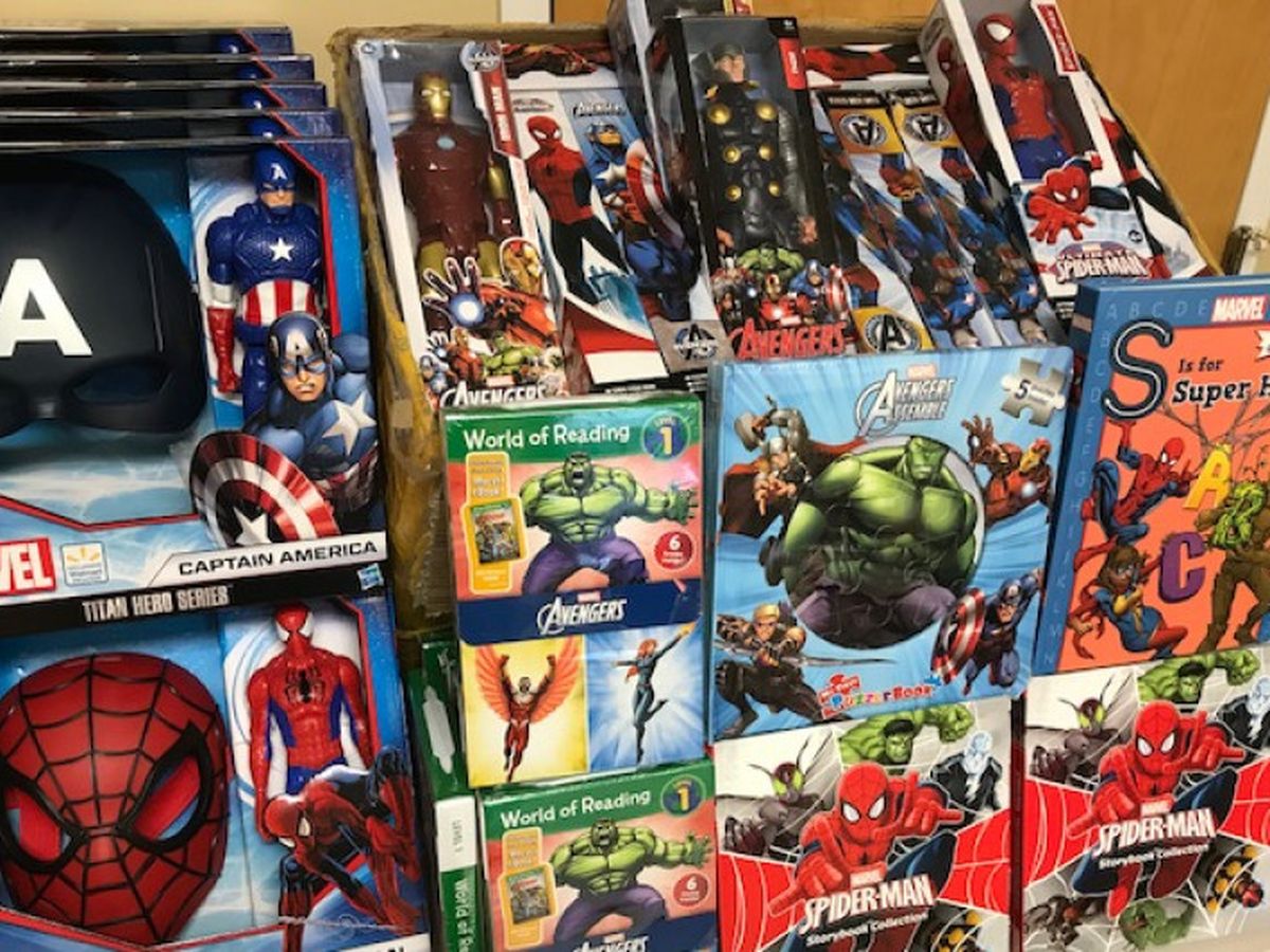 Here is a partial shot of toys and shirts we are bringing to 4 different events in December at USO, Walter Reed, Gilchrist Hospice Center and Anne Arundel Medical Center. We have over 100 superheroes, 100s of books and comic books, 100s of superhero shirts of all sizes. Your donations allow this to happen. We are at 15%!!