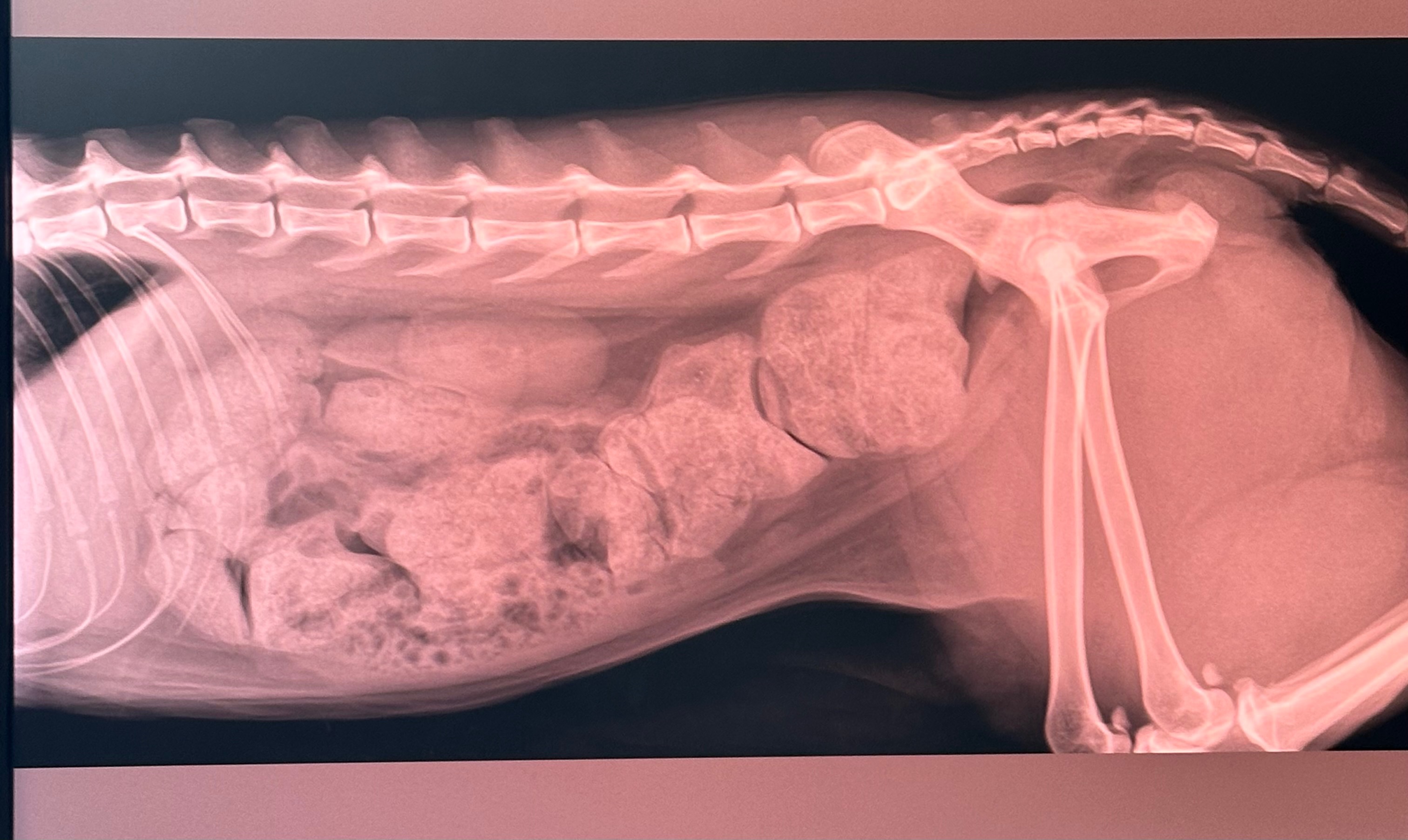 He is currently being treated to remove the current stool backup (picture attached), which is a long, extensive, and expensive process.