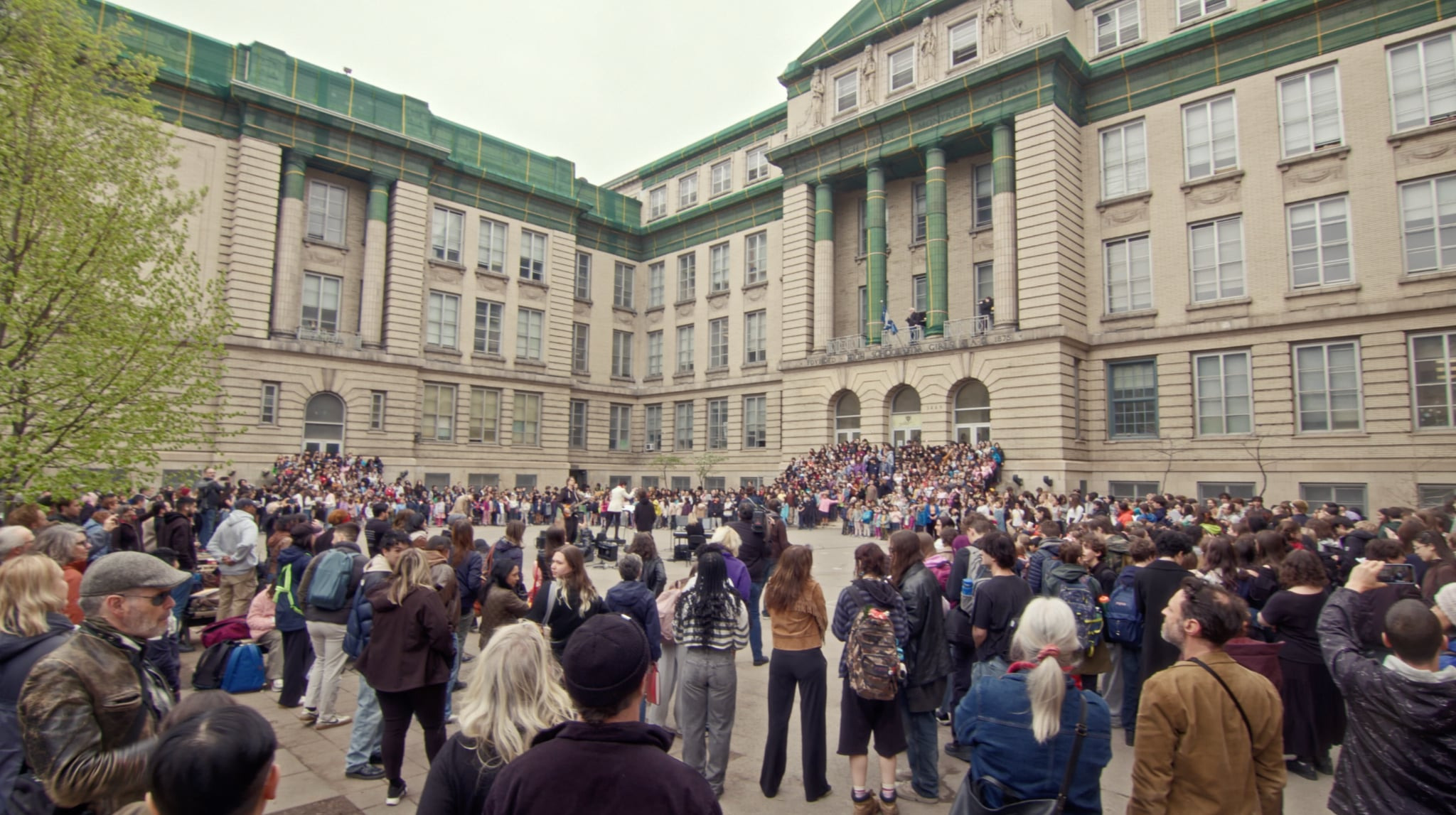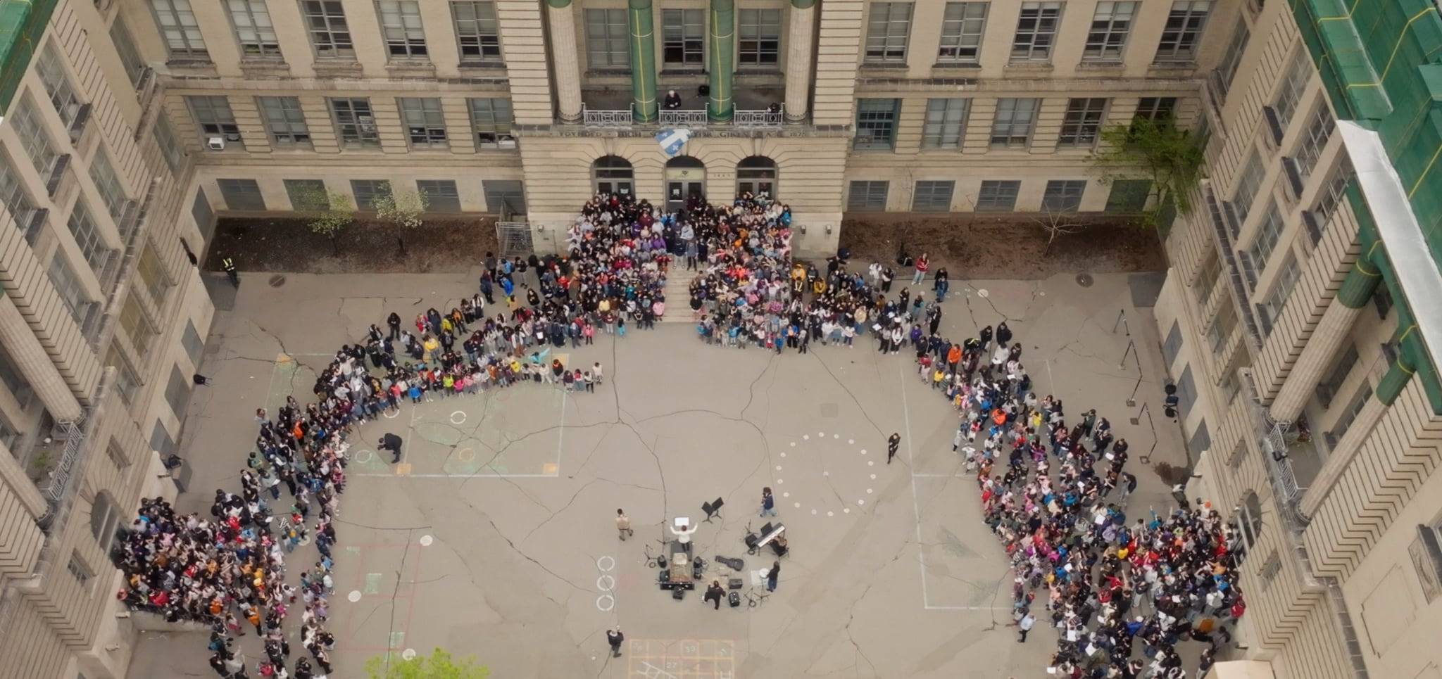 Les voix des élèves chantant Les Cowboys Fringants dans la cour / The voices of students singing Les Cowboys Fringants in the courtyard