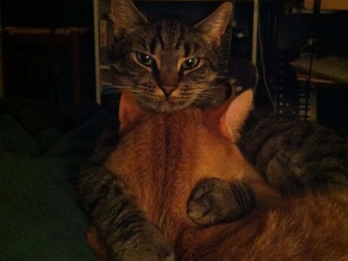 Face and his brother, Icarus, are two of the most precious little dudes I have had the fortune of meeting, let alone being the owner of. Since 2009, when they were born from the same litter, they've spent every single day together. 70% of the time cuddling or rough housing with one another, always always always together. They've bewildered every single person that has had the opportunity to meet them and see them in their element. I've seriously witnessed peoples' minds explode while interacting with or simply observing these two cats together. People don't seem to witness this kind of trust and companionship in cats, but also, they have such distinct personalities and it's truly a unique spectacle. I mean, the main photo at the top...that's not staged. That's just what they do.