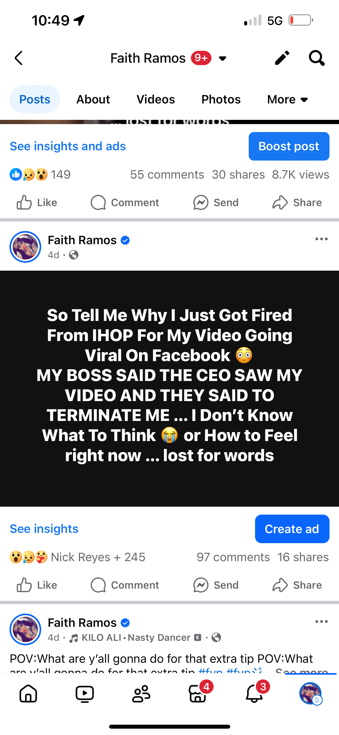 My Name Is Faith Ramos And I Took The Faith To Start This Go Fund Me When Serveral People Suggested That I Make One To Help Me as I Lost My Job Saturday and Got Fired From IHOP after being there for 2 years. I Got Fired From IHOP For One of My Videos I Posted That Went Viral. I Was As Shocked as everyone else when I got the news. I Have Been At IHOP for 2 years I’m a very outgoing funny person with a big loving heart and a big personality who loves God and loves my kids. All I do is go to Church , Hit the Gym and Work that’s about it ; ive come along way in my life and Journey and I’ve changed my life completely and have overcome so many things these past years fighting to get to where I’m at today. I have so many followers and friends so for those of you who have been following me and have known me know my journey because I post a lot and I share a lot about my life and you have seen me grow. And seen my videos and my influence on others and in life and seen when I got fired. I really feel it was wrongful termination and I got fired and was done wrong, the 2 years I been there I was never written up but maybe once ; I was a hard worker I was at IHOP for 2 years was never late , at that I was 30 min early to my shift if anything, out of the 2 years I worked there, I worked every holiday , never called in but twice the whole 2 years I was there and at that it was cause it was a emergency if I called in . I would go to work sick at times just to make sure I worked and took care of my kids and bills. I’m a single Mom and I have worked my butt off for this company and anyone can tell you that I was a very hard worker and was always there on time and never missed a day but maybe one or two. There were serveral other employee's who were constantly late everyday or called in all the time, or wouldn’t show up for days or even weeks and still had there job and are still there and were never written up or lost there job over it. There were about 6 employee’s that went to jail in the past couple months and got out and still had there jobs, and I got fired for doing my job and making videos because my video went viral. When I made my videos it was either before i clocked in after my shift or on my restroom breaks or when it was slow not during my time while I was busy and had tables. I looked at it as people who would smoke and vape took smoke breaks and I didn’t smoke so those were my smoke breaks , I took little breaks just like everyone else would but if anything I was a good server. Anyone of my other employees can tell you or my regulars who would come see me or even people I’ve waited on. They can tell you I was a good server , one of the best servers and I got so many compliments on how good I was and they loved my videos and my personality. So as you can see when I got the news that I was being fired I was so shocked and heartbroken and in disbelief and I couldn’t believe they were firing after being there 2 years. It took a lot for me to start this Go Fund Me because I was kind of embarrassed and wouldn’t know what people would say or think at first but as I thought about it I figured it wouldn’t hurt to try to see where this gets me and what help I could get for now until I get another job. So many people reached out to me on my posts about me getting fired to start the Go Fund Me so I stepped out in Faith and thought I’d give it a try and see where it goes. I know For sure to continue to put God first in anything and I feel like maybe God is closing one door and opening a bigger door for me in my life. And I got to continue to have Faith no matter where this takes me in life … I’ve come too far in life too look back . So if you’ve read this and are willing to help me in anyway I would greatly appreciate you so much … if you have anything negative to say or if your one that’s gonna judge and be ugly then I would kindly ask and appreciate if you kept your comments to yourself and just keep scrolling ….. God Bless You All…. as I Pray over this Go Fund Me , I Pray that God opens the doors and puts the right people in my path that are willing to hear my story and understand my story and are willing to help in any way without criticism and judgment …. It’s worth a try and A little Bit of Faith ♥️✨