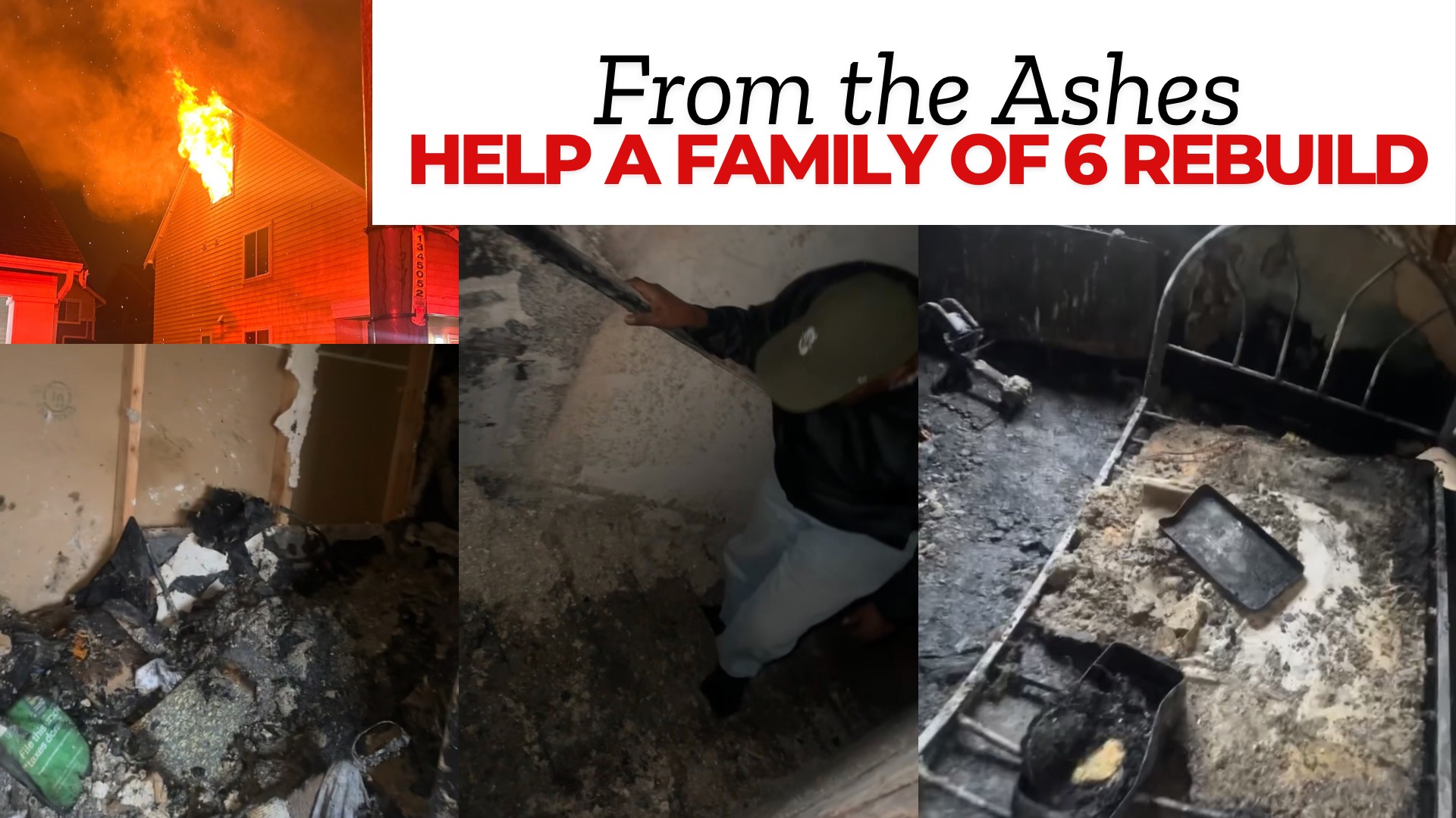 This family of six,, is now faced with the impossible task of rebuilding their lives from scratch. Without insurance, they are left with no safety net, no belongings, and no home. They need our help to get back on their feet.