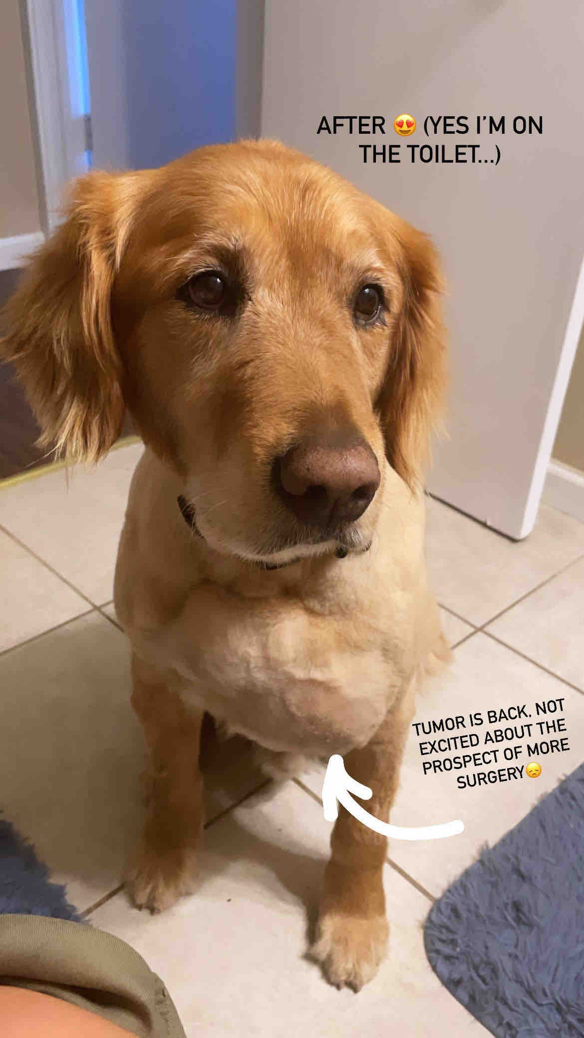 A little about the surgery: Stew was diagnosed with low grade mast cell cancer in early 2020 (what a gift of a year that was…), in addition to having multiple fatty tumors of various sizes. He had surgery in the spring to remove 8 tumors, one of which was cancerous. He recovered like a champ, even if he did look like a frankenpup. His second surgery was not as simple, as a large lipoma (fatty tumor) had been by his chest/armpit area, and up into the nerve endings there. By the time it started protruding from his chest, it was almost as large as a football. The surgery took place in December, during which another small cancerous tumor and small fatty tumor were also removed, and the empty space left required  a drainage tube that stayed in for weeks, along with multiple rounds of antibiotics to combat infection. Bringing Stew home from the hospital, and the days that followed were heart wrenching, to say the least, and are what I dread the most about going through this again. But in true Stew fashion, he quickly forgave and forgot and bounced back to his happy, youthful self. Unfortunately, the tumor did too, because the surgeon wasn’t able to get all of it out safely.