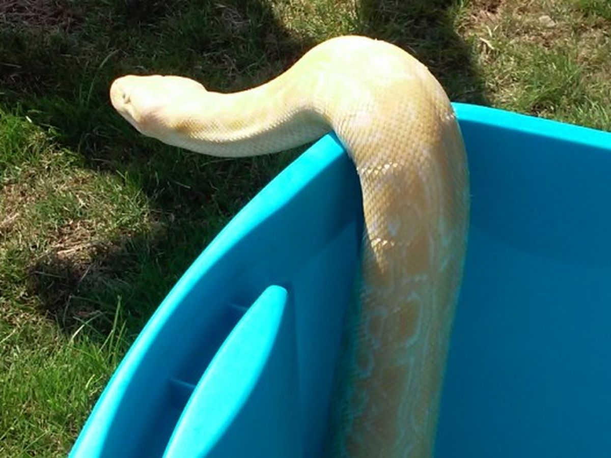Hello, this is Pumpkin, my 'little' girl that's an albino labyrinth Burmese python, she's been raised by my father and I, since she was less then a month old.