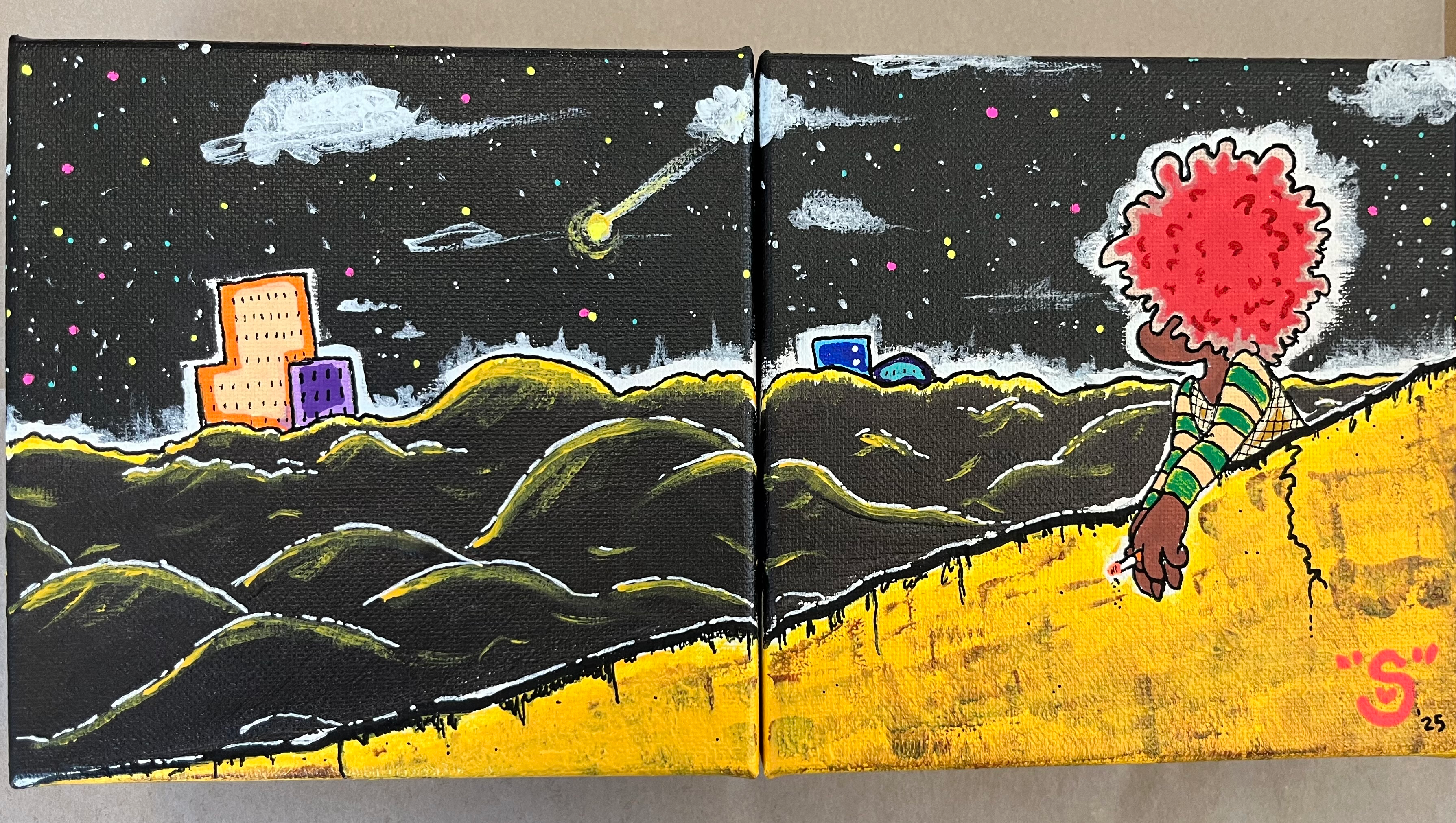 i have been working towards eventually becoming self-employed so i can sell my art and make a living, but the process is slow and it may not even end up coming to fruition due to the government coming after non-profit organizations that help me. i sell my art online and get enough money for some art materials and household supplies, but it's nowhere near enough to live off of steadily.