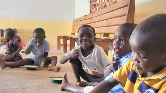 (The last photo are children eating the funded porridge while attending their nursery school!)