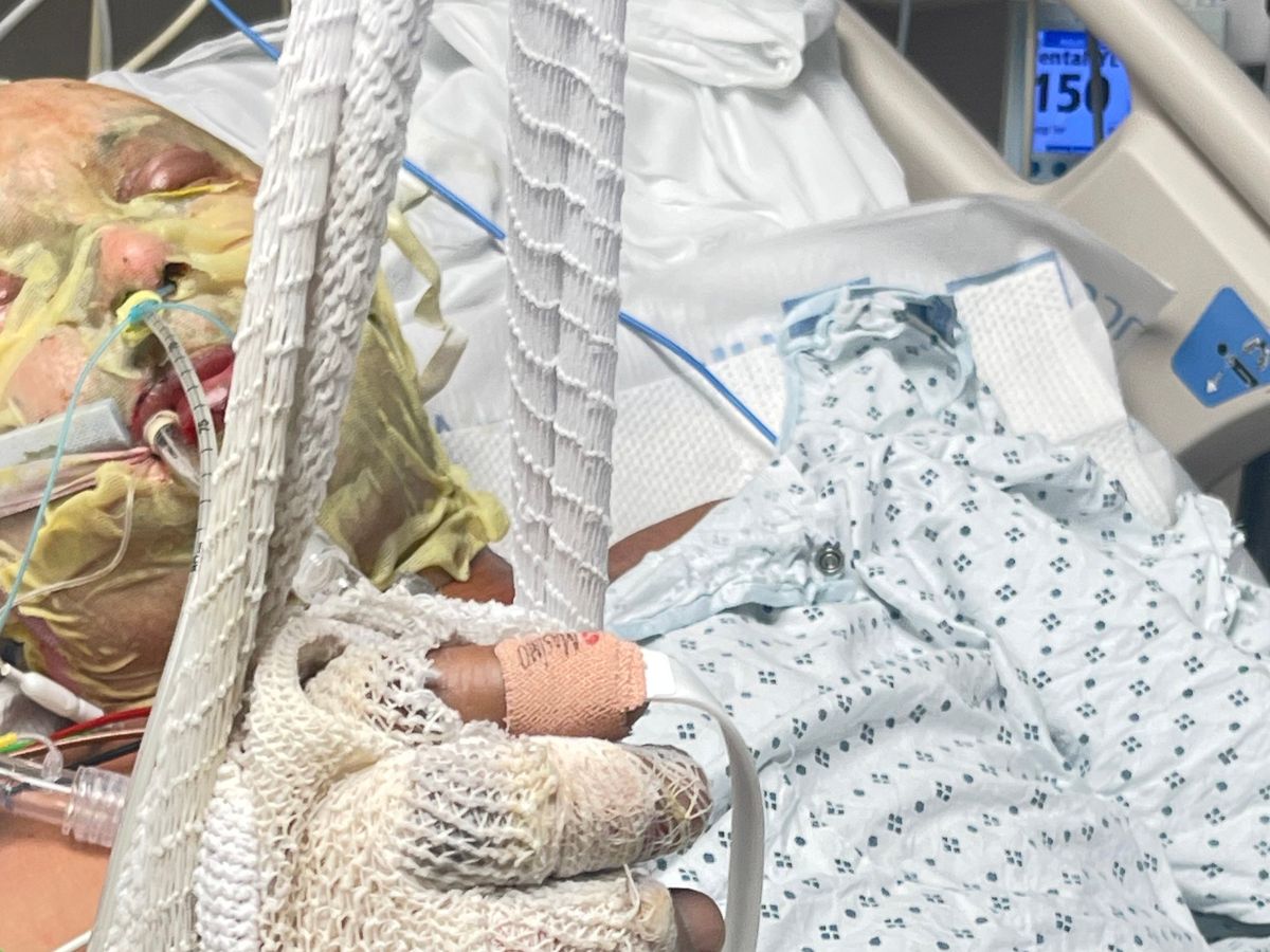 Un helicoptero vino y lo volo al hospital de la Universidad De Norte Carolina en Chapel Hill. Mi papa tiene quemadas graves de tercer grado en la espalda, hombros, y su cara. Los doctores nos informaron que el va a estar en el hospital recuperando por tres a seis meses.