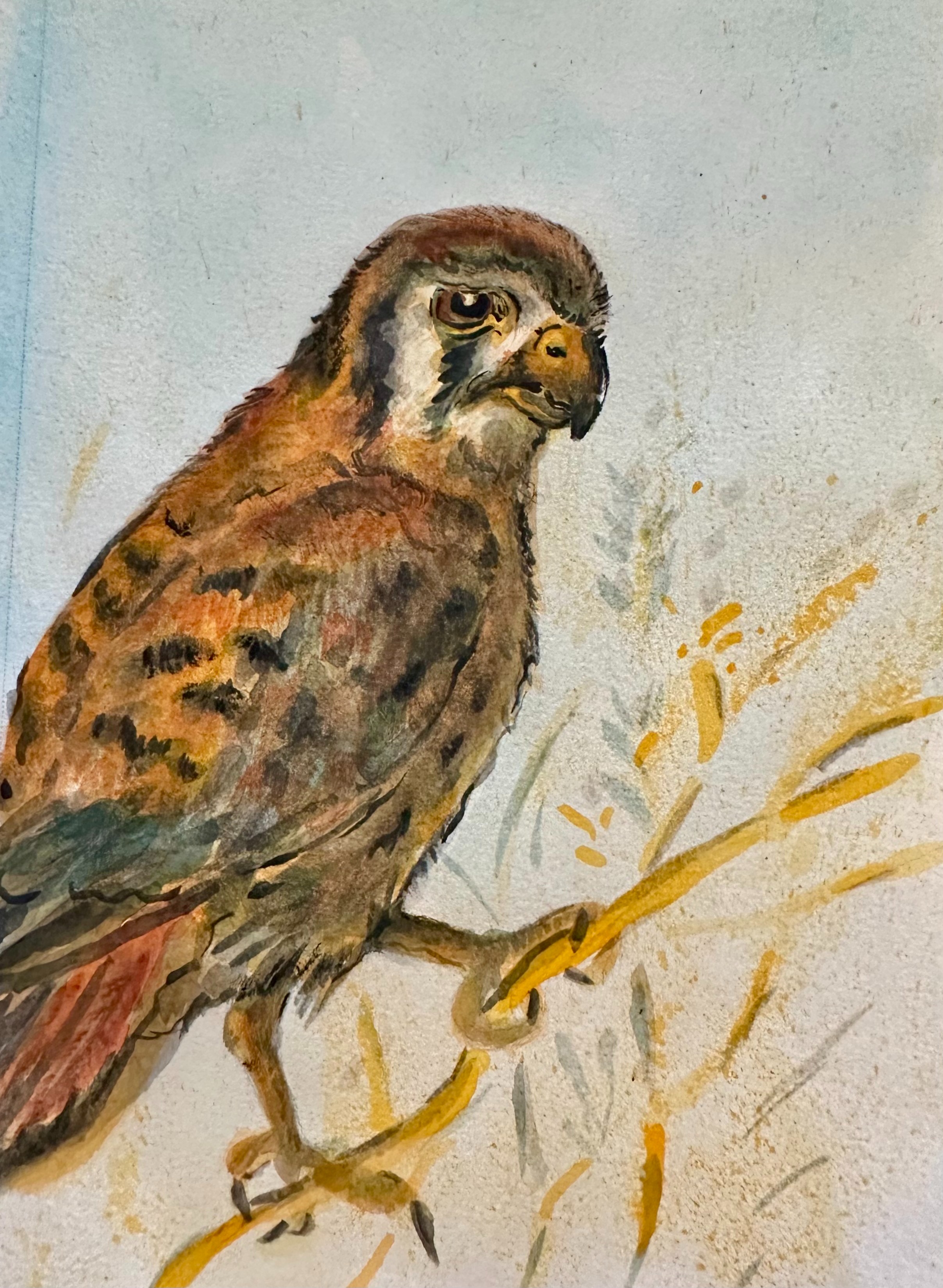 My name is Natalie Honeywell, and I am a pre-apprentice and falconer hopeful. My other hats include friendly neighborhood dog walker and local artist. My goal is to work hard and train a young American Kestrel through the falconry season to successfully catch and eradicate invasive pest species. We will be specifically targeting sparrows and starlings due to their detrimental effect on native wildlife populations and extreme proliferation throughout the San Gabriel Valley. My goal with my Kestrel will be to successfully make a dent together in this population, treat her well, overwinter her through the season, and release her in the spring back to where she was found to go raise a family of her own. This approach is called passage falconry; the trapping and training of an immature bird of prey throughout the season to be released at the end of the season as a mature and prolific hunter that hopefully gets to pass on her genes!
