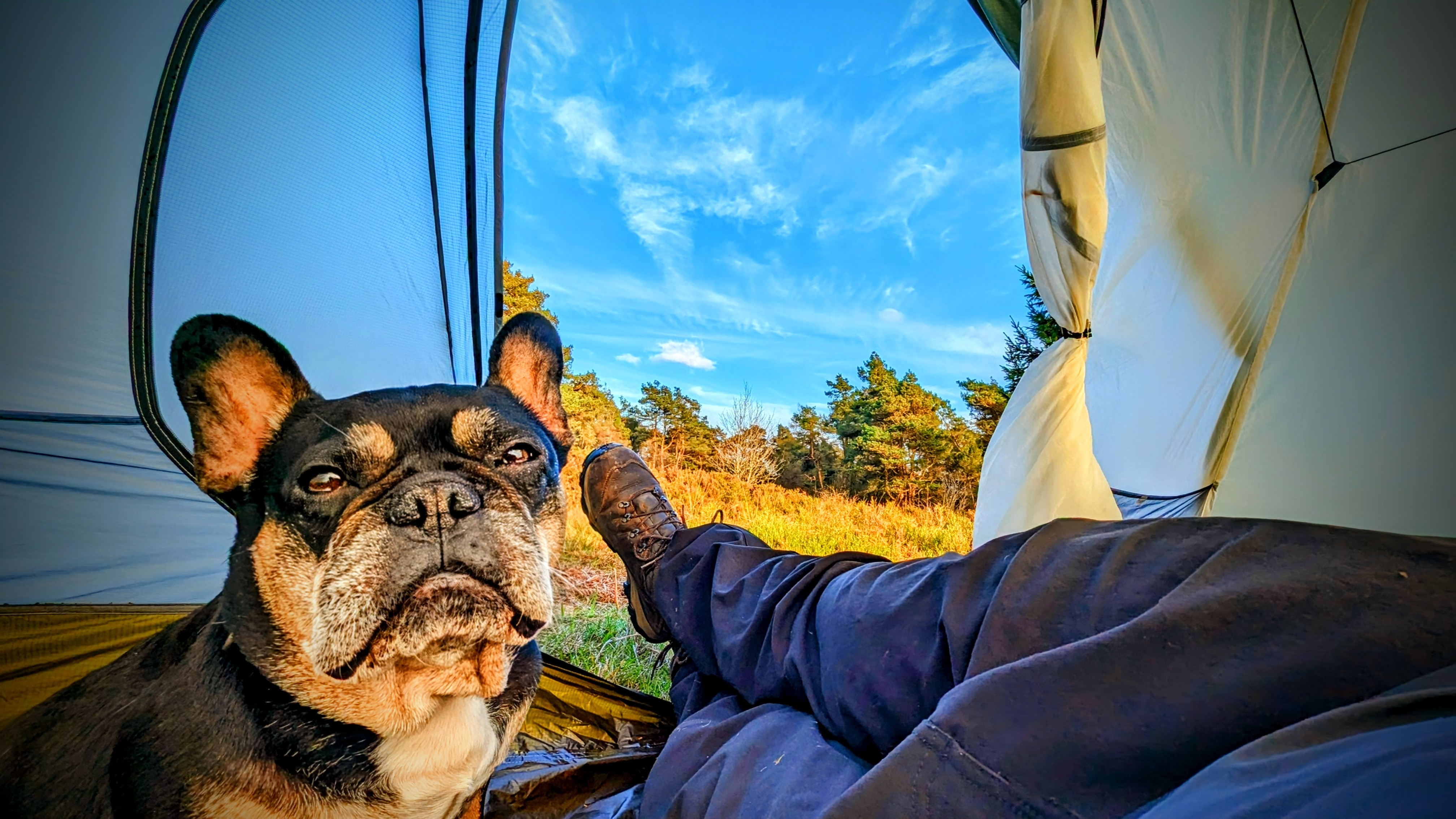 We go on daily walks and weekly hikes and wild camping trips in the English countryside, (see YouTube channel Grizzly Gaz to see her enjoying life). Who would have thought that a French Bulldog would be the perfect hiking buddy. We've camped on some of the UK's highest mountains, bleakest moorlands and creepiest woodlands...
