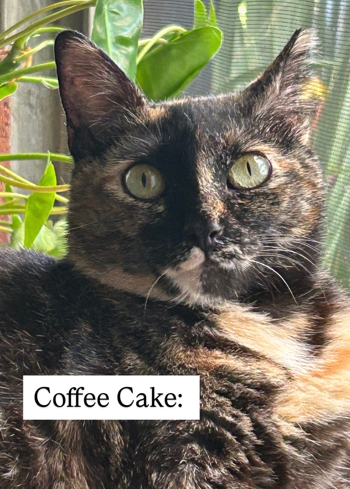 Coffee Cake is supposed to be America’s Sweetheart but she’s 40 pounds overweight and addicted to Temptations. She showed up skinny and having just given birth, but there were no kittens to be found. She was so young that she had no street skills whatsoever.