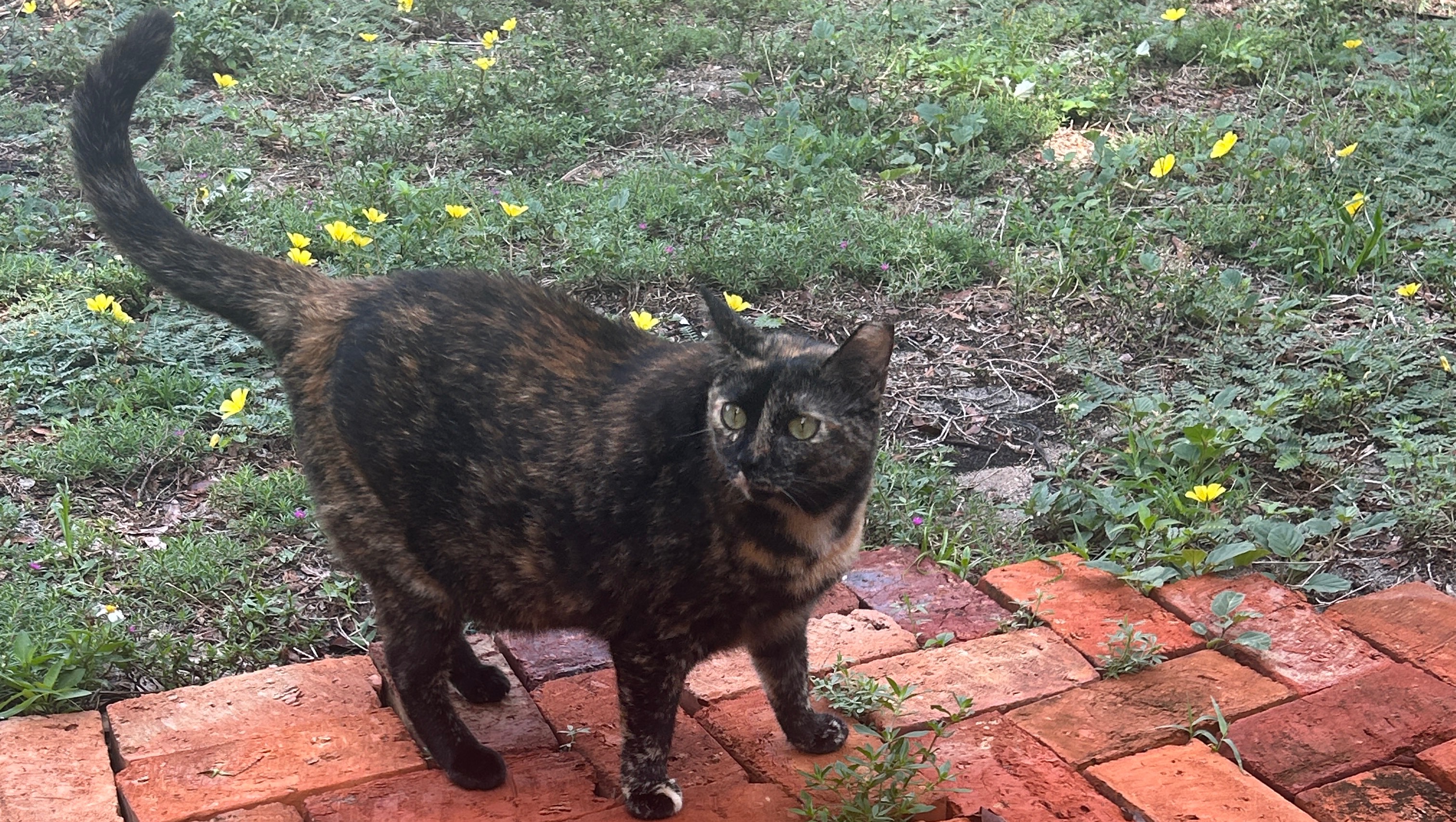 She met Tiberius and they have been bonded as a pair ever since. While she loathes his catnip addiction, she loves being the queen of their distant grove. She’s a very standoffish and demanding lady, she definitely needs flea medication and at some point another type of care could help with her lifelong injury.