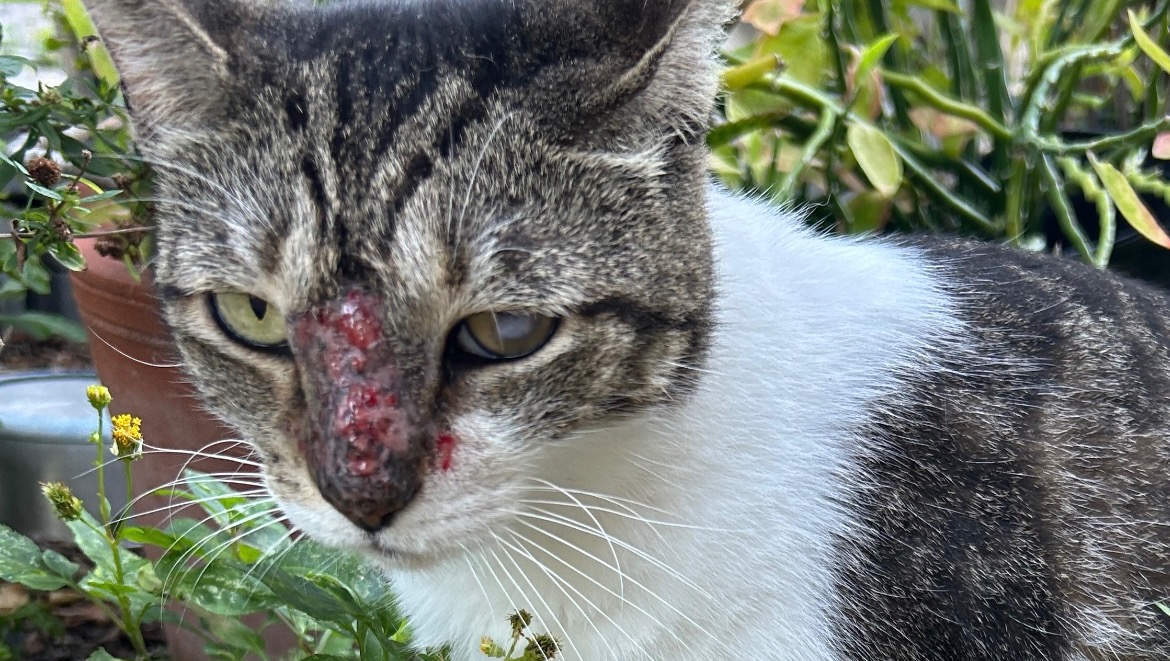 In January, one of these ruffians attacked Ossells, resulting in a deep bite wound to the neck, plus shortly after afterward he came down with an upper respiratory issue where his nose is completely blocked up making it extremely difficult for him to breathe or eat. He went to the clinic twice over the last 3 months for antibiotics, but nothing is helping.