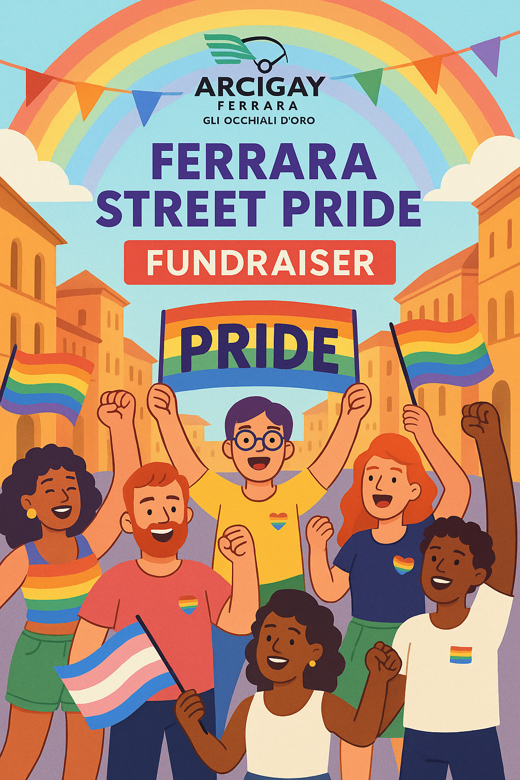 La Street Pride è di tuttə e per tuttə. È un investimento in una società migliore, più colorata e più accogliente. Arcigay Ferrara "Gli Occhiali d'Oro" APS lavora da anni sul territorio per promuovere i diritti e il benessere delle persone LGBTQIA+. Questa Street Pride è il culmine del nostro impegno, ma non possiamo farlo da soli.