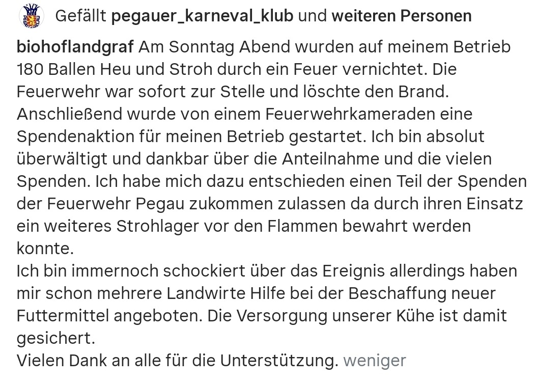 Heute am 18.1.2026 hat ein Feuer das Winterfutter unseres lokal ansässigen Bio-Landwirt in Werben zerstört. Diese Spendenaktion soll dem kleinen Betrieb helfen, schnell wieder auf die Beine zu kommen und kurzfristig helfen.