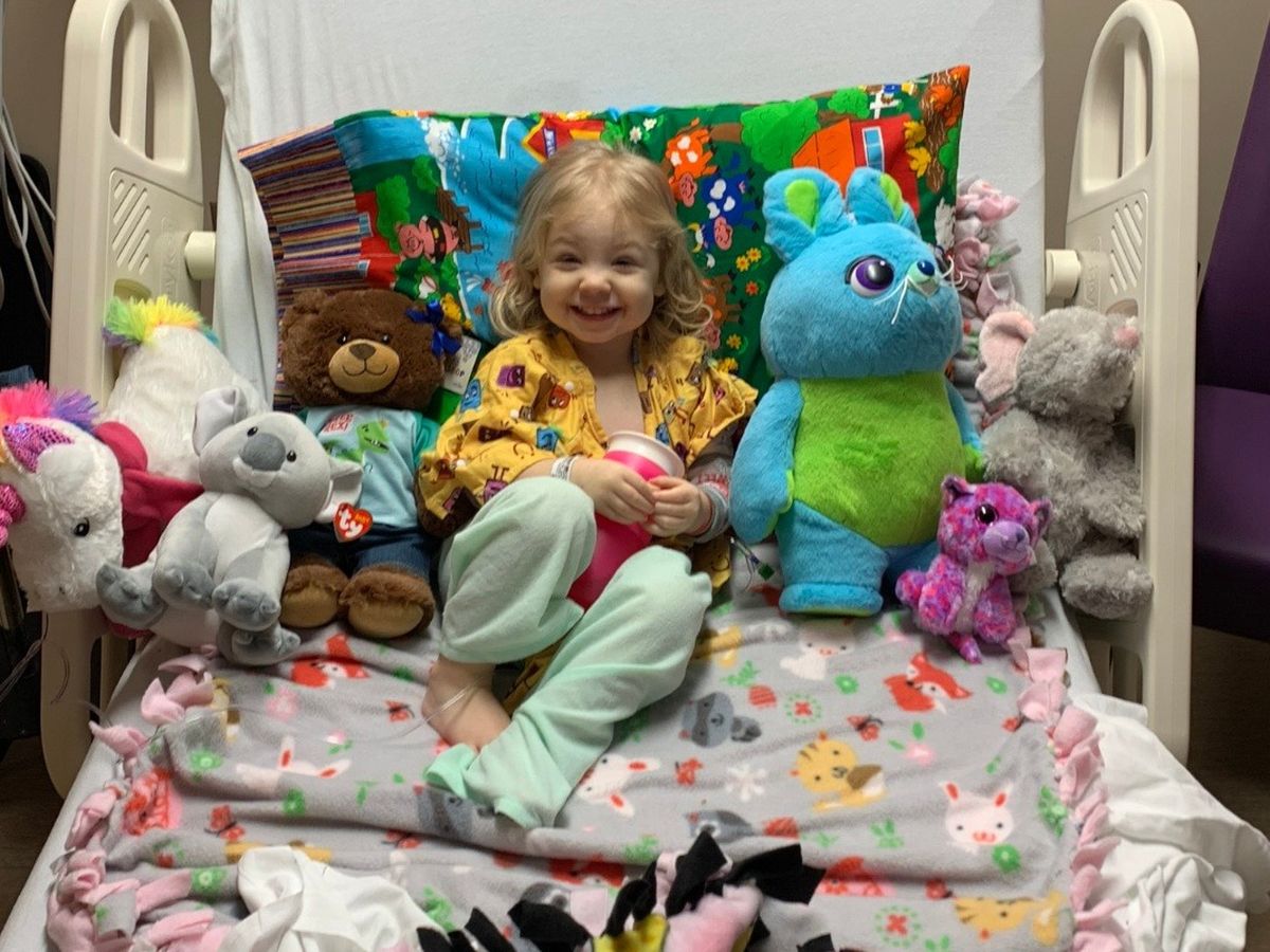 The doctors expect a hospital stay of one solid for Phase 1 of Felicity’s treatment and 2.5 years of periodic stays for continuing treatment. She will have to receive chemotherapy throughout this process. Felicity loves people (big and small) and is fiercely independent and go, go, go which has been difficult with chemo treatments. She enjoys playing pretend and learning new things. Her favorite pastimes are watching Minions, Toy Story, Frozen, or Bubble Guppies; having books read to her; playing outside; and helping with whatever Mom and Dad are doing. The hardest thing for us as parents to watch is her grimace with pain while she is determined to play with her friends. She would crawl if she had to before she stopped trying to play. It was truly the embodiment of the human spirit and will to experience life and do it with joy.