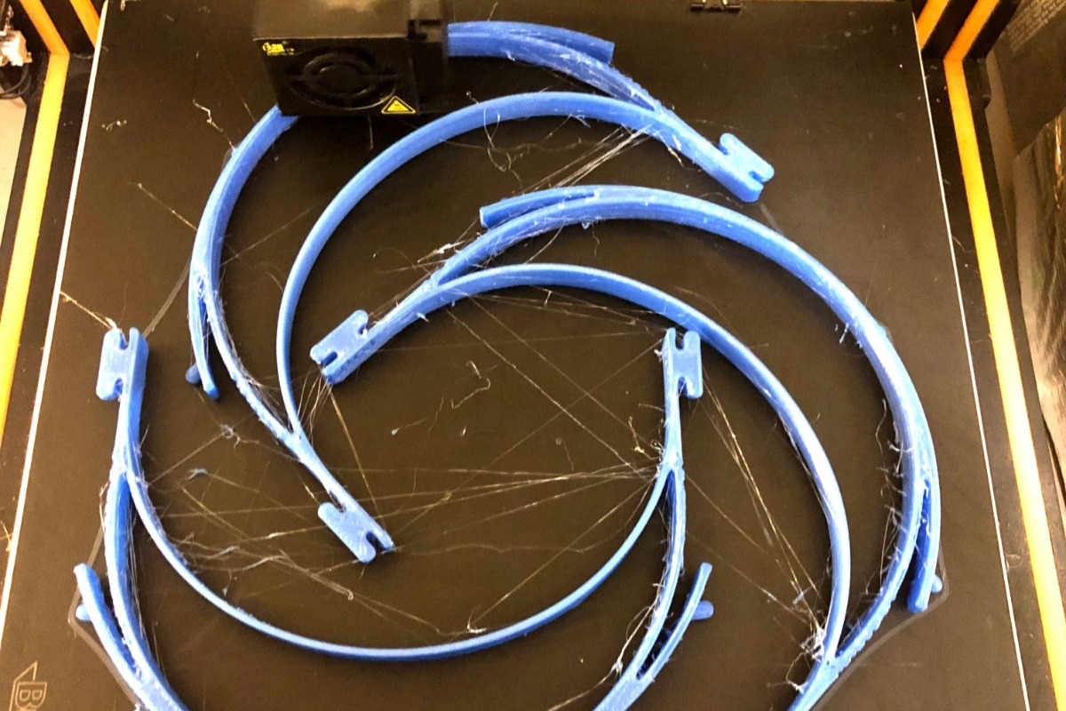I have produced over 95+ face shields over the last 12 days, and on my best days, I've 3D Printed 15 of them per day. I believe 20-24 is possible with just my two machines as I dial in all the parameters. If there is enough funding, then I plan to add at least three more 3D printers so I can get to over 50 a day. Afterwhich, I will add a laser cutter if funds permit. It is much faster to laser cut or CNC the face shields than 3D print them. The benefit of laser over CNC is that the edge where its cut is left clean and sealed for better disinfecting between uses.
