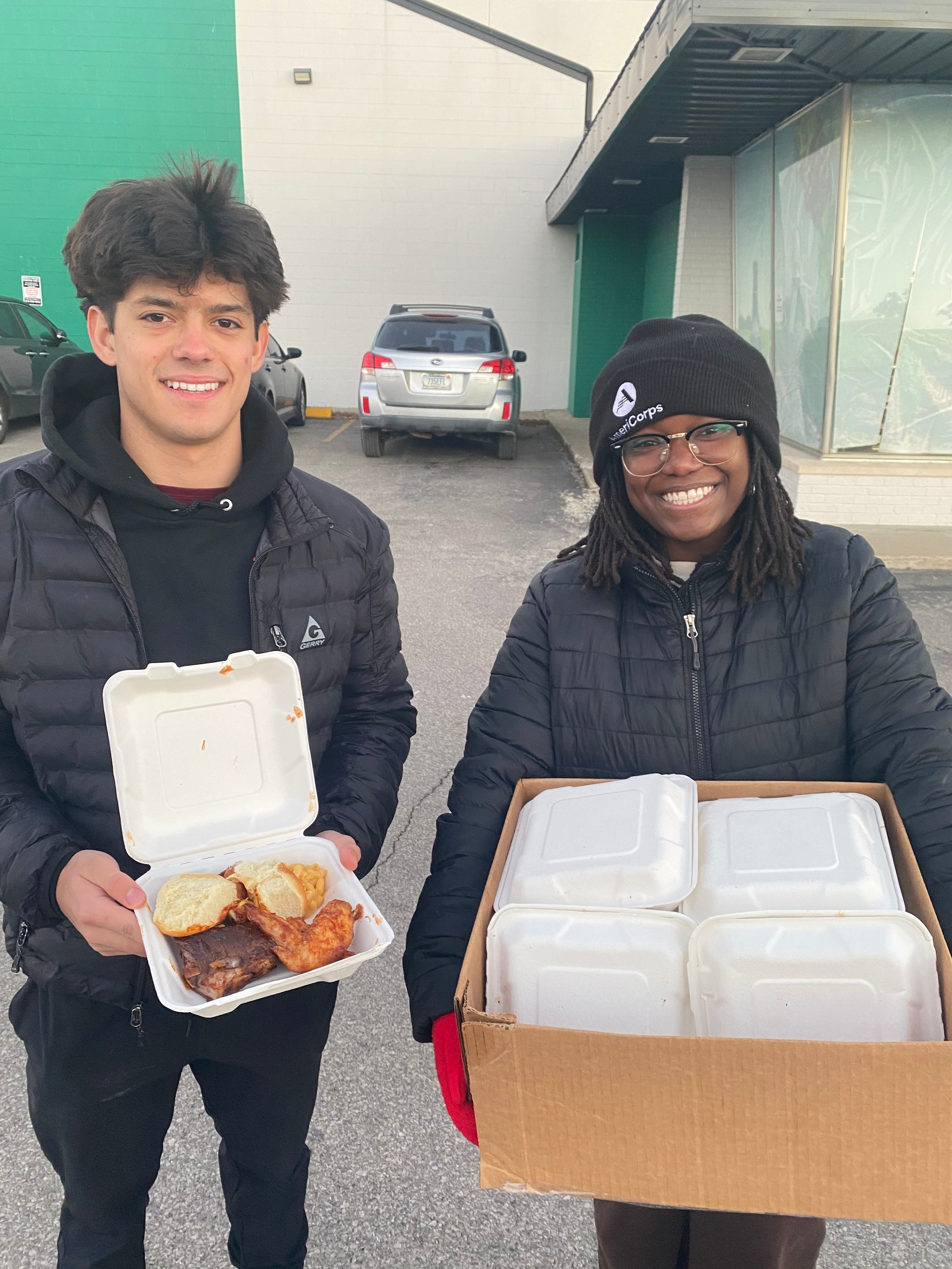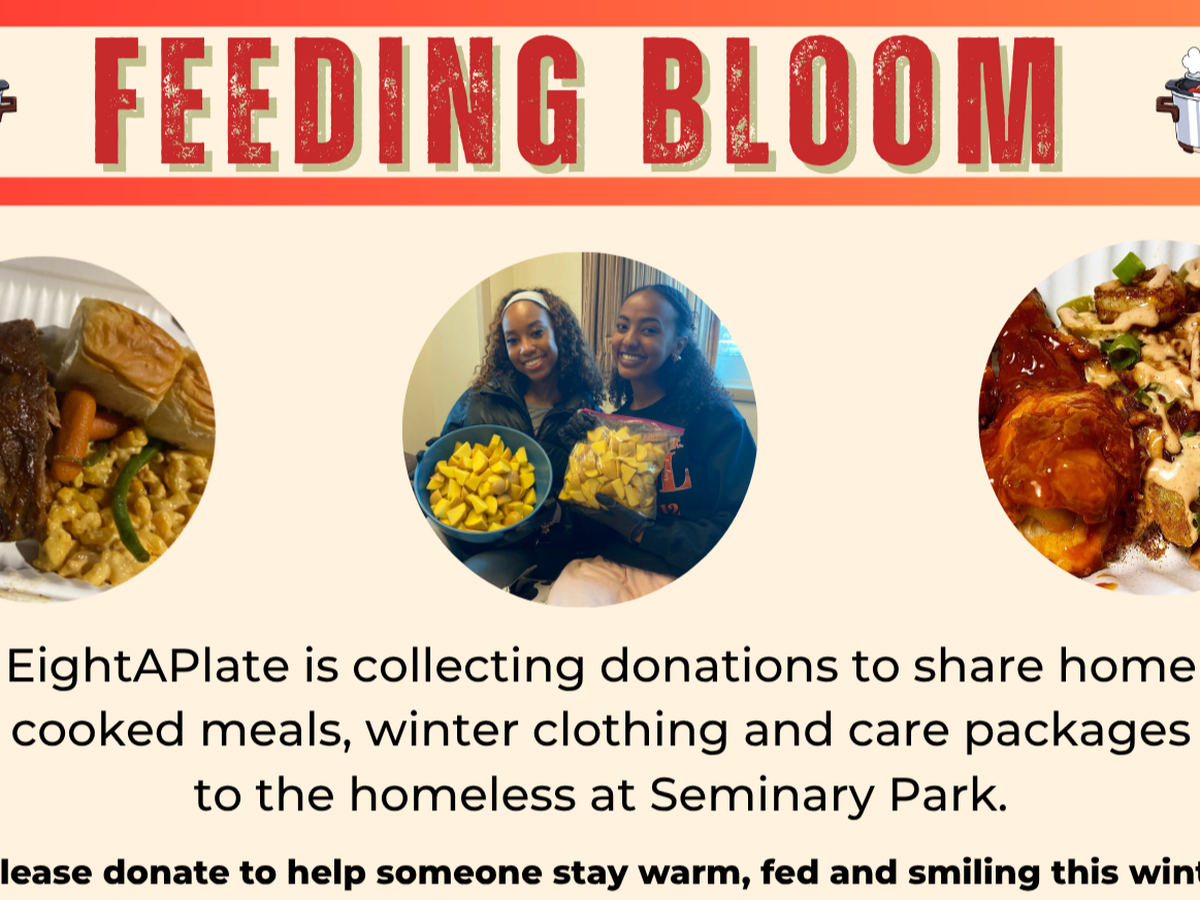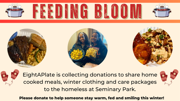 Feeding Bloom is a philanthropic initiative I started at IU to support people experiencing homelessness in Bloomington . We organize 1 event each semester where we prepare and distribute home-cooked meals, along with care packages and handwritten letters. This is the 8th and final Feeding Bloom of my time in college, in my 8th and final Feeding Bloom.