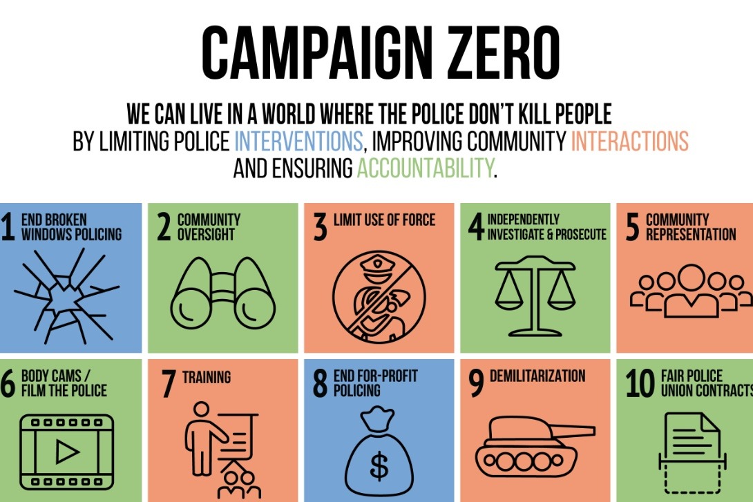 Campaign Zero is a project of the non-profit 501(c)(3) organization, WeTheProtesters. Funds donated to Campaign Zero support the analysis of policing practices across the country, research to identify effective solutions to end police violence, technical assistance to organizers leading police accountability campaigns and the development of model legislation and advocacy to end police violence nationwide.