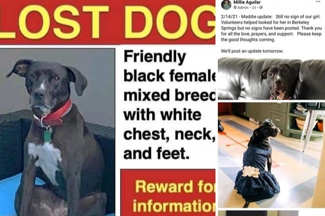 Maddie (a.k.a. Treasure Madison) was lost on Fri., Feb. 10 in the early evening near Sleepy Creek, Berkeley Springs, WVA - the very day she arrived for a week of vacation with her dads. She was out doing what she loves, smelling scents and chasing deer. Unfortunately, she hasn’t been seen since and many have been searching for her since. Dads have extended their stay in search of Maddie to be able to go home to Pennsylvania WITH HER