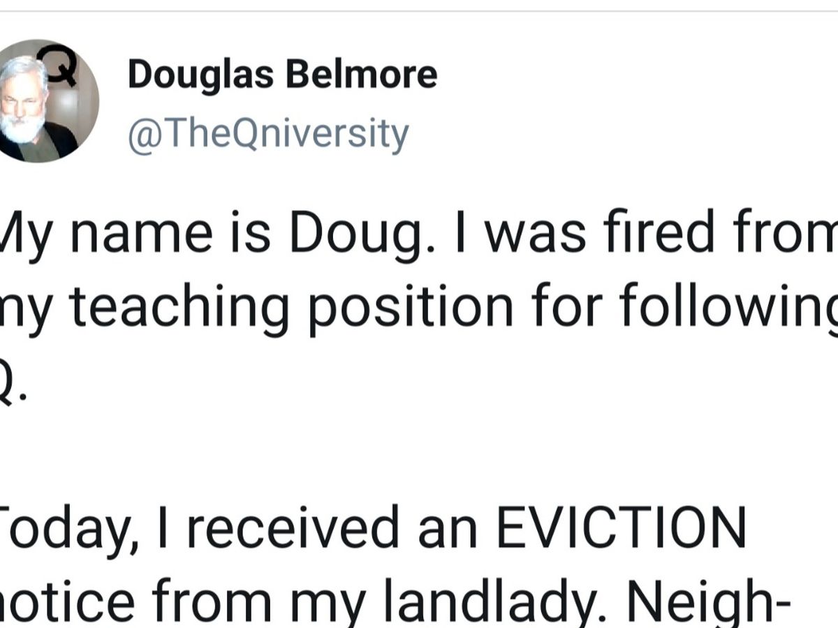 "My name is Doug. I was fired four months ago for introducing my college class to Q. No one will hire me. My state has been lying to me and denying me unemployment insurance benefits. I don't know what to do. I have never felt so alone. I am penniless, hopeless. It's Christmas."