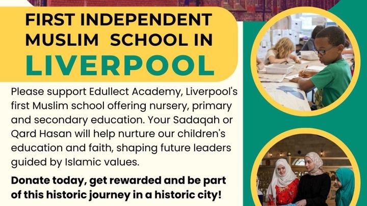 Salaam. Please donate generously tor our project to establish the first Independent Muslim School in Liverpool. You will be investing in our future leaders grounded in Islam and academic excellence. We need your support to refurbish our school chain in Liverpool. If you can give qard hasan (loan) please contact me (Shah) on [phone redacted] 2446 or (Ismail) 07907 953882