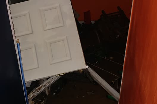 A door was ripped off its hinges. The stairs to the back deck were pulled off by the waters. In addition to the damage to the floors, walls, and foundation, our electric and HVAC systems are ruined.