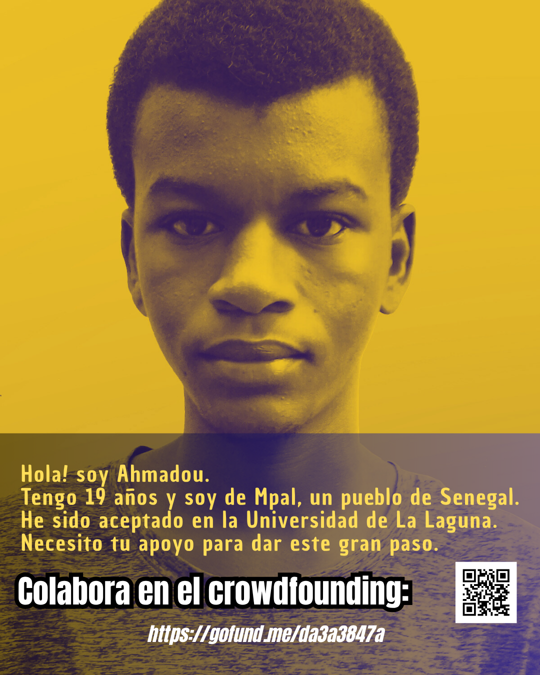 Por eso reactivamos esta campaña: para recaudar fondos que cubran sus necesidades académicas y legales, y asegurar que Ahmadou pueda continuar sus estudios con estabilidad y plenitud.
