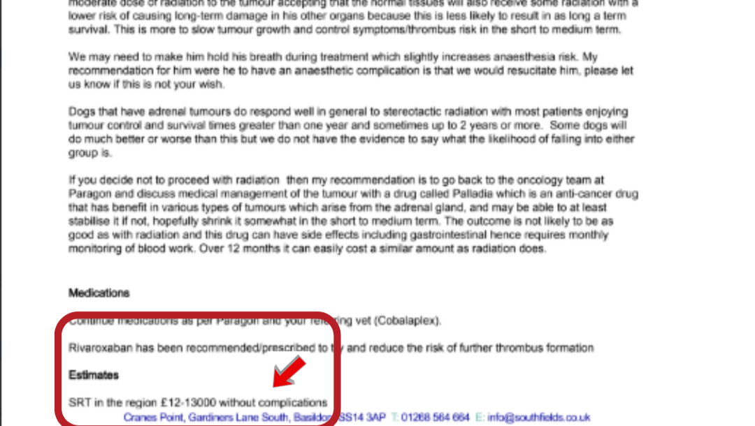 The cost of radiotherapy alone WITHOUT COMPLICATIONS is £13,000