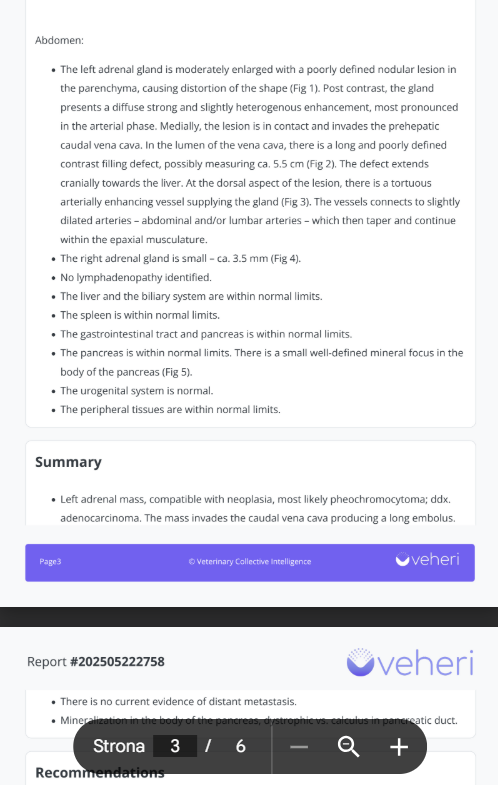 When we had an ultrasound to confirm intestinal inflammation, it turned out that Misio had a tumor in his left adrenal gland with changes in his veins and aorta.