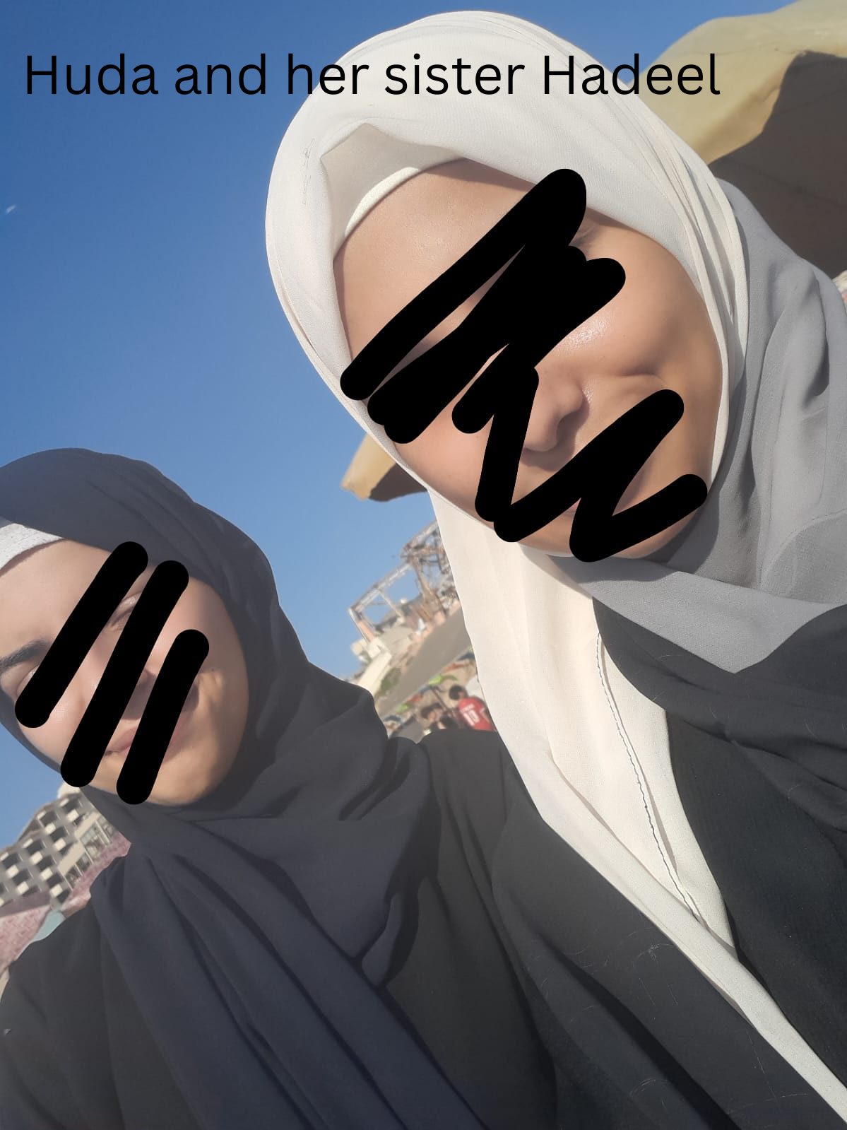 Huda lives with her mum, two aunts, her sister Hadeel (19), her brother Mohammed (11), her little sister Alyazia (4), and five cousins – Maryam (6), Leen (4), Ahmed (10), Malak (2), and Hamza (3). Every day they are struggling to find food, clean water, and to stay safe during the war.