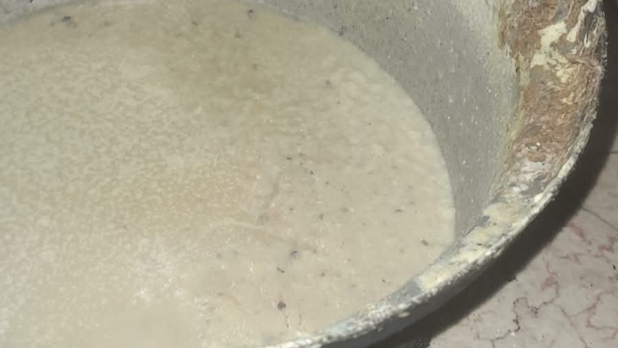 Food is very expensive in Gaza because of the blockade. This photo shows a lentil and flour soup that cost $90 to make.