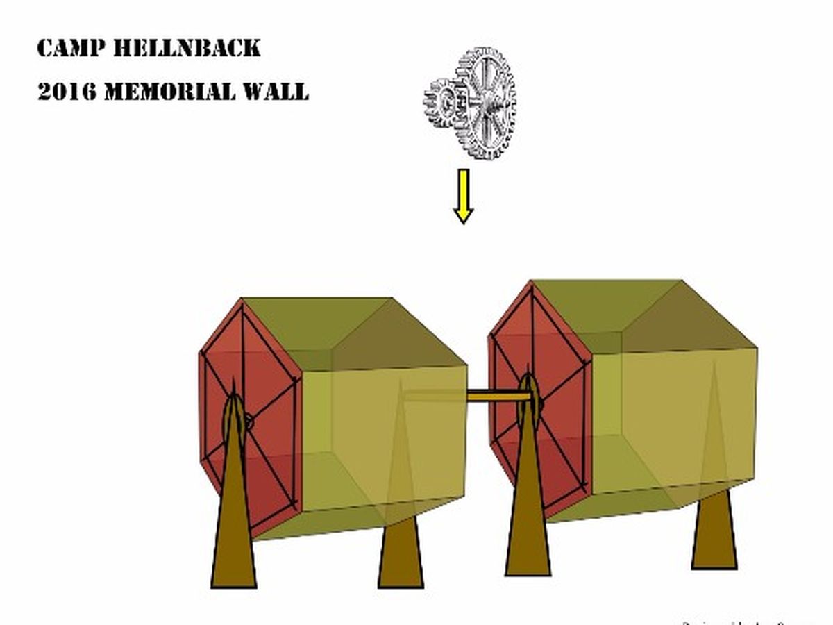 Camp Hellnback will recreate a Memorial Wall this year, but in concert with Da Vinci's Workshop theme, the wall will be cylindrical and hand cranked. Names can be submitted on line at the website, or written directly on the wall at the event. Lumber is the largest cost of the project.