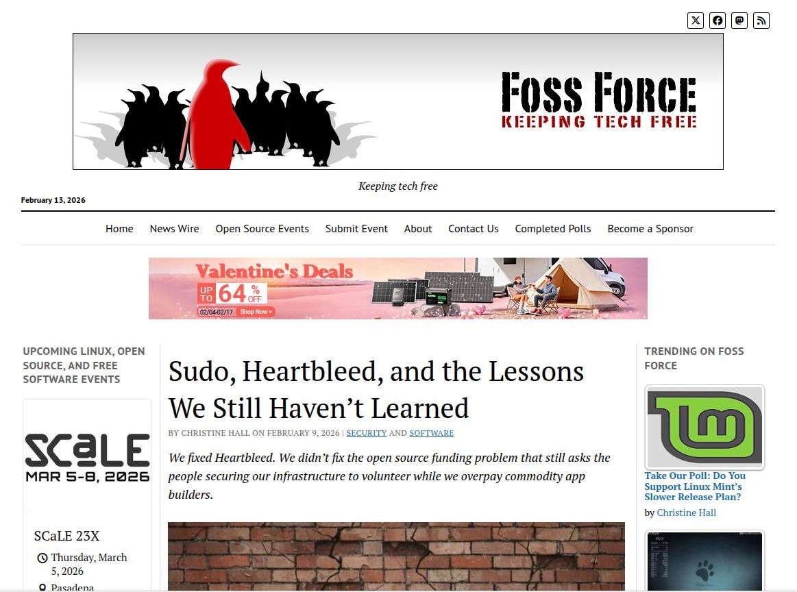 For more than 15 years, FOSS Force has told the kinds of stories about free and open‑source software that don’t usually make it into mainstream tech coverage. We cover not just new releases, but long‑running projects, governance fights, licensing issues, community debates, and frequent reviews of Linux distributions and open‑source applications that help everyday users choose tools they can trust. Your support will help us bring in more voices, dig deeper into these stories, and help our independent, experienced outlet remain focused on covering open source for the people who actually rely on it.