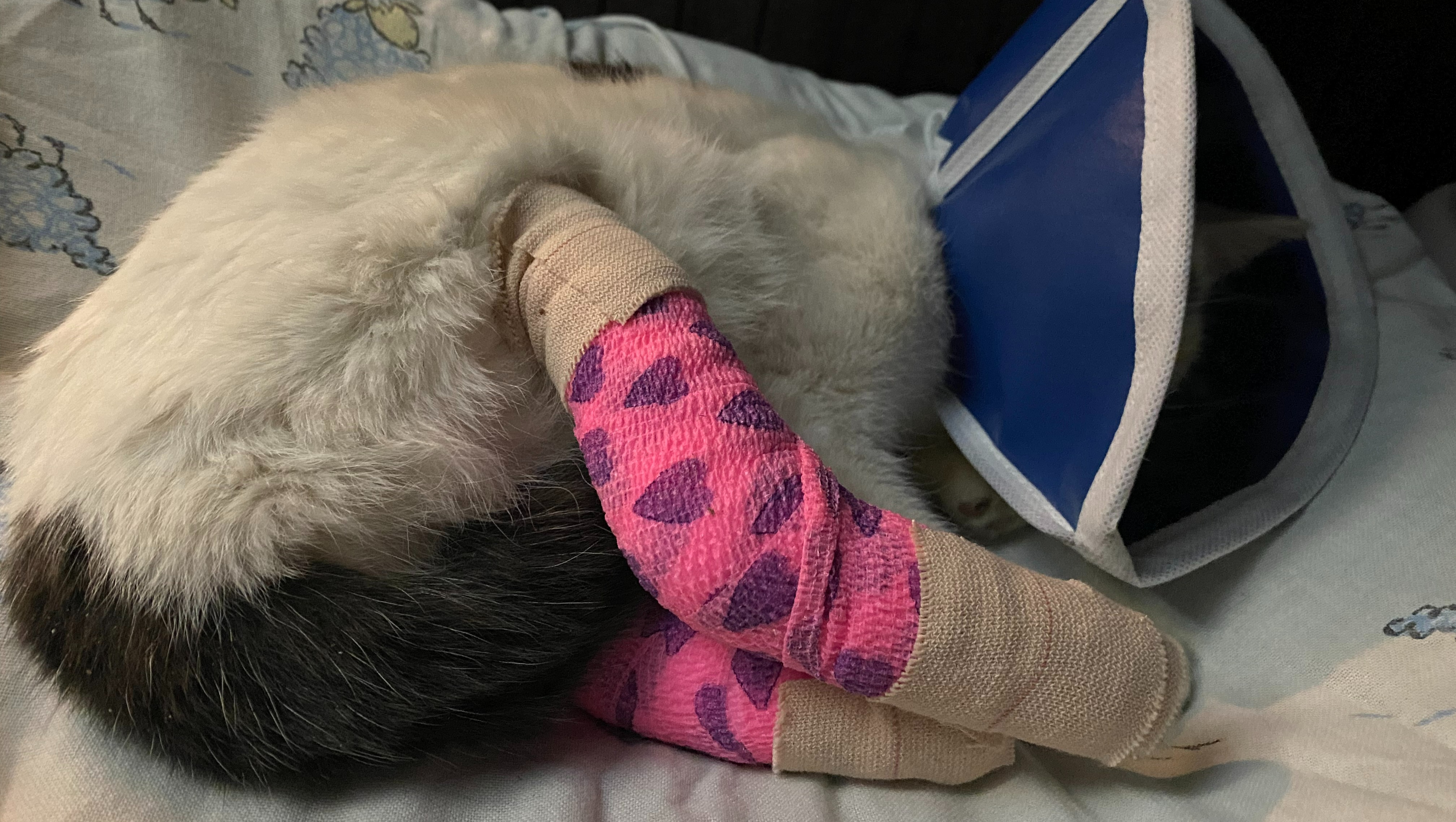 This sweet, gentle girl has stolen our hearts in a few short days, and we've named her Coconut. It hurts to see her in so much pain; we want to give her all the available treatment to live a long, happy life with us; the cost is just SO MUCH, and unfortunately, we only have so many funds available. As the Vet said this will be a long road to recovery.