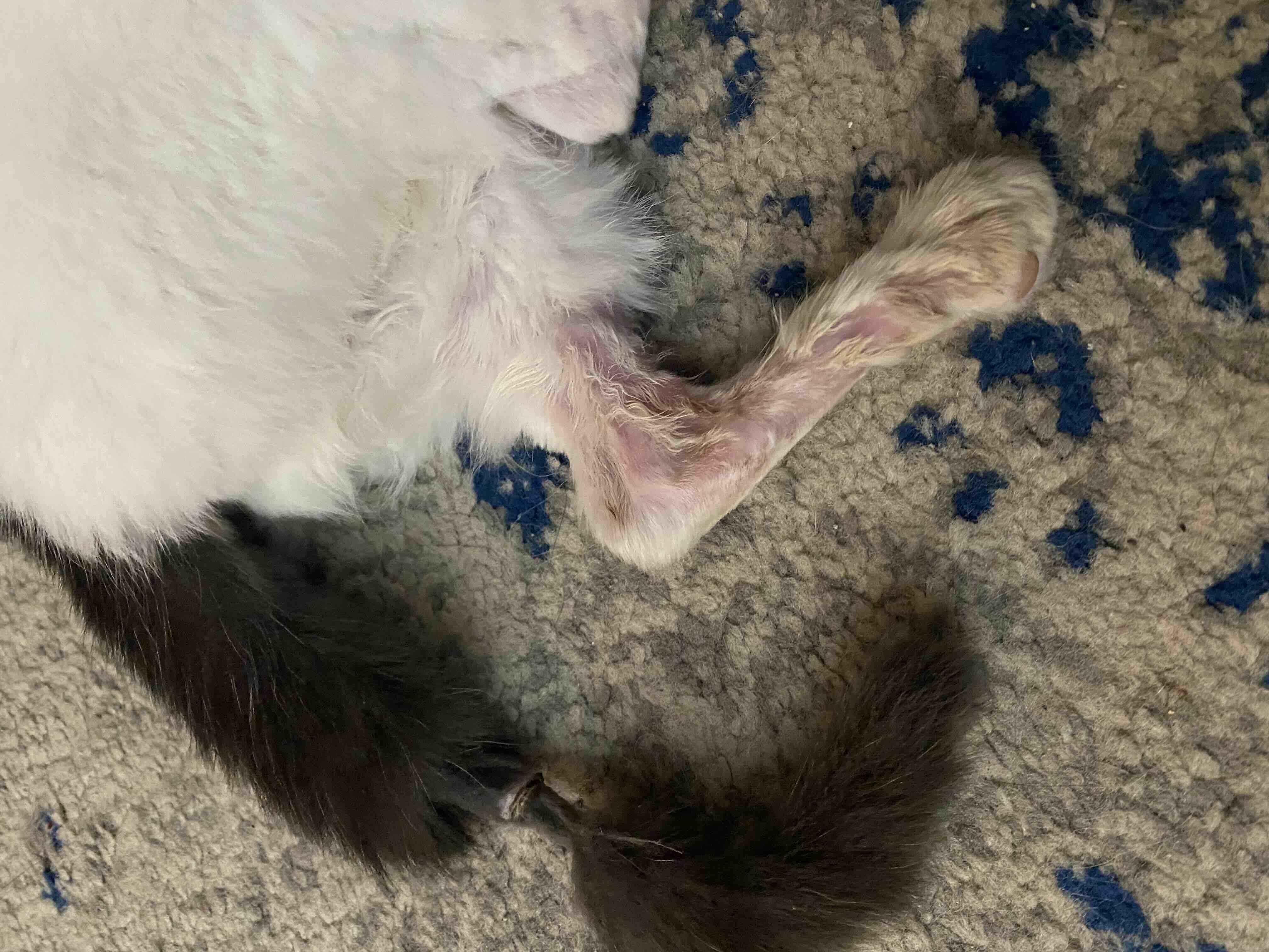 We brought her in and found she had painful frostbite on her paws, nose, feet and legs. In addition, the frostbite on her hind legs was scabbed and raw and exposed to the bone. We made a vet appointment for the next possible date but found that she was in severe pain and her wounds were infected; she needed to be seen by a Vet ASAP, which led us to the Emergency on the weekend.