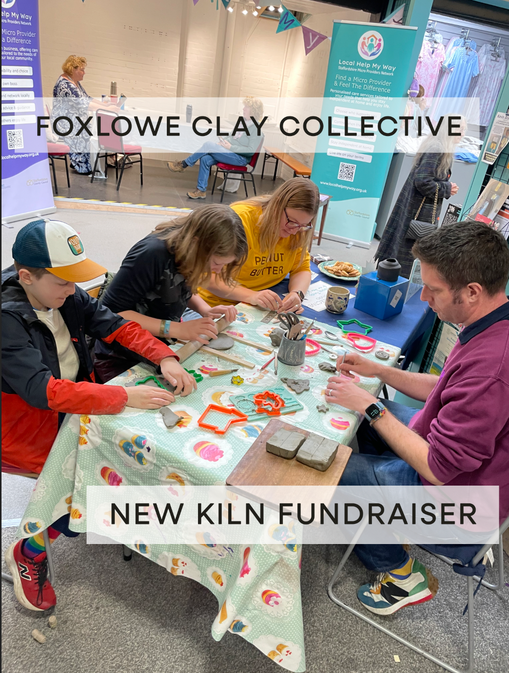 - Raising awareness in the Leek community, we have taken over the Outside Arts stall at Leek’s Buttermarket, run clay sessions and a tombola asking for donations, with all takings going into our kiln fund