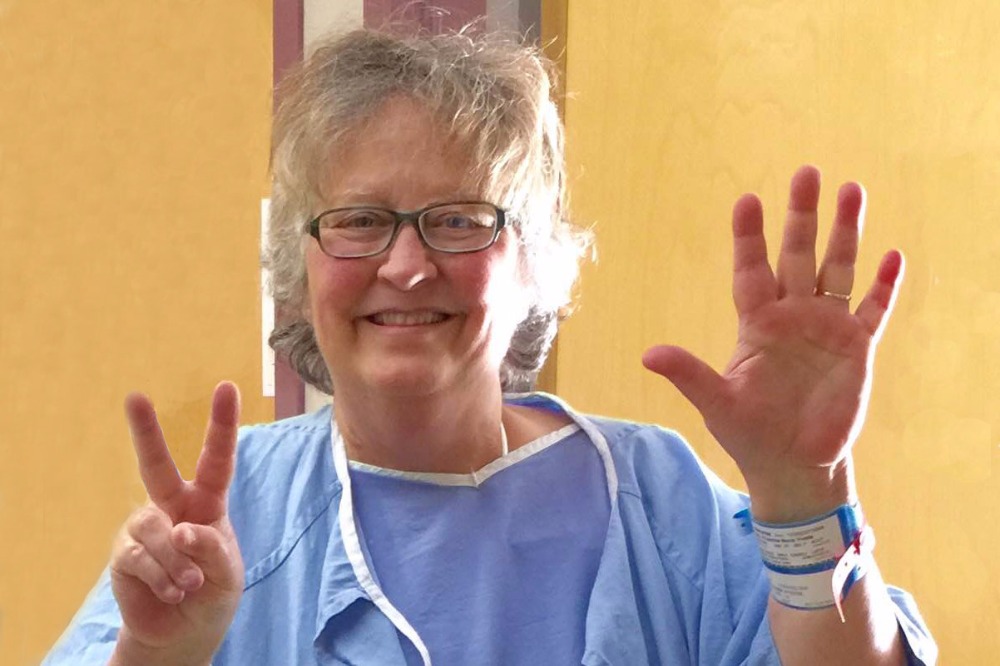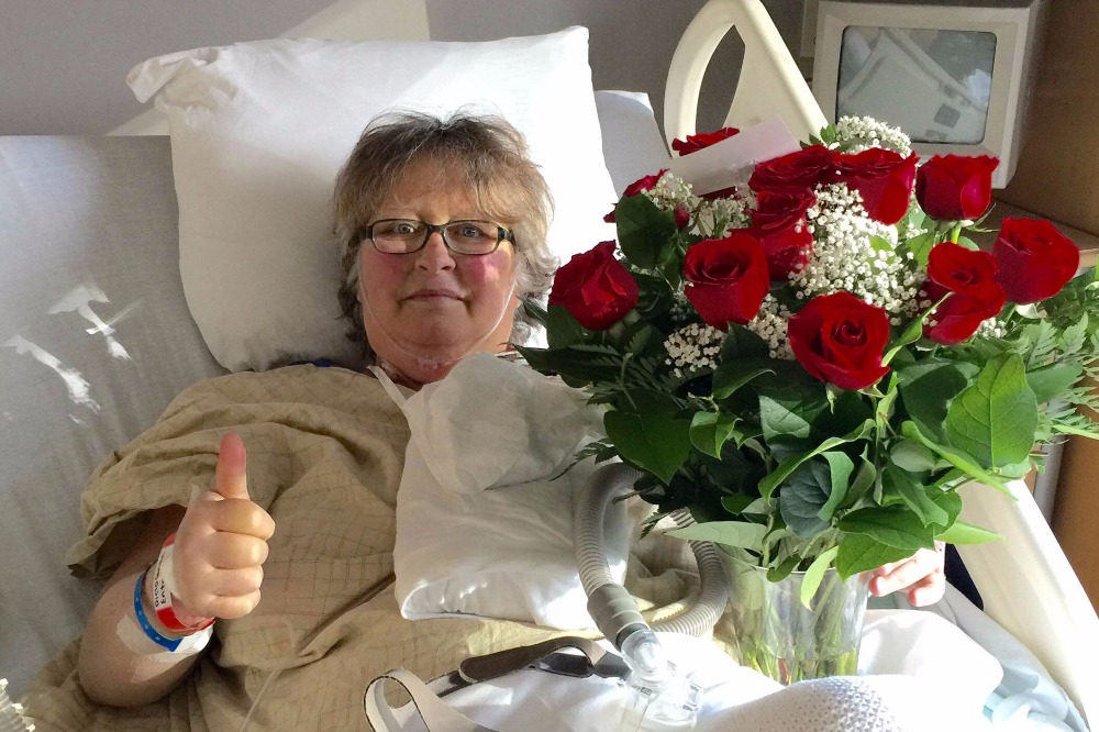 7) On March 16, 2016, 2 days before the insertion of a mechanical pump, Francine received word from her doctors that a compatible heart was available for her in the next few hours. At 9:00pm that evening, a successful heart transplant surgery occurred. Within 2 days, she was walking a short distance, which she could not have done before. Her color came back as illustrated in the photo below.