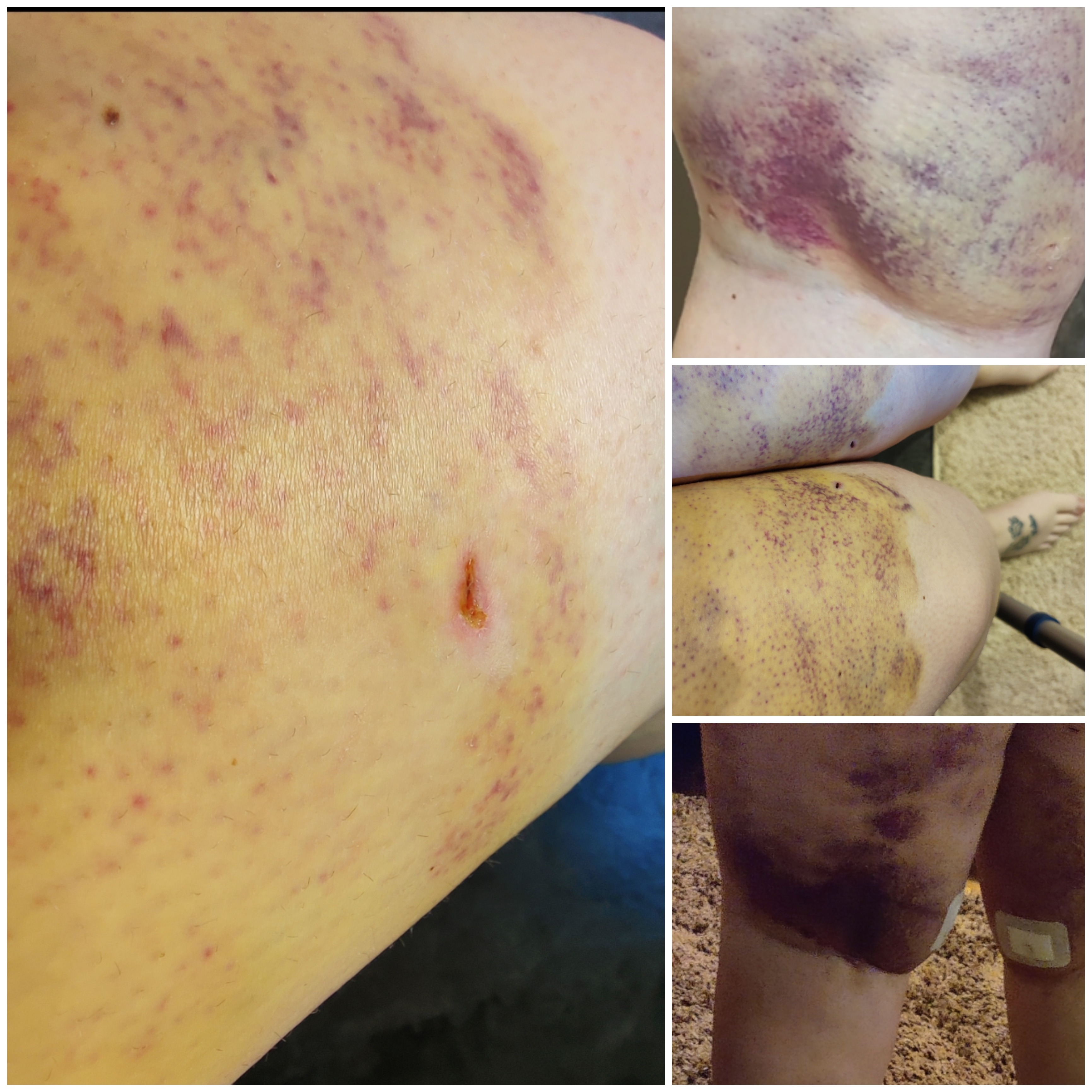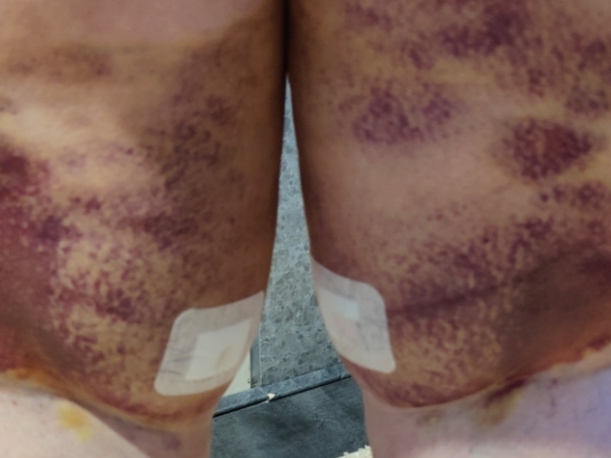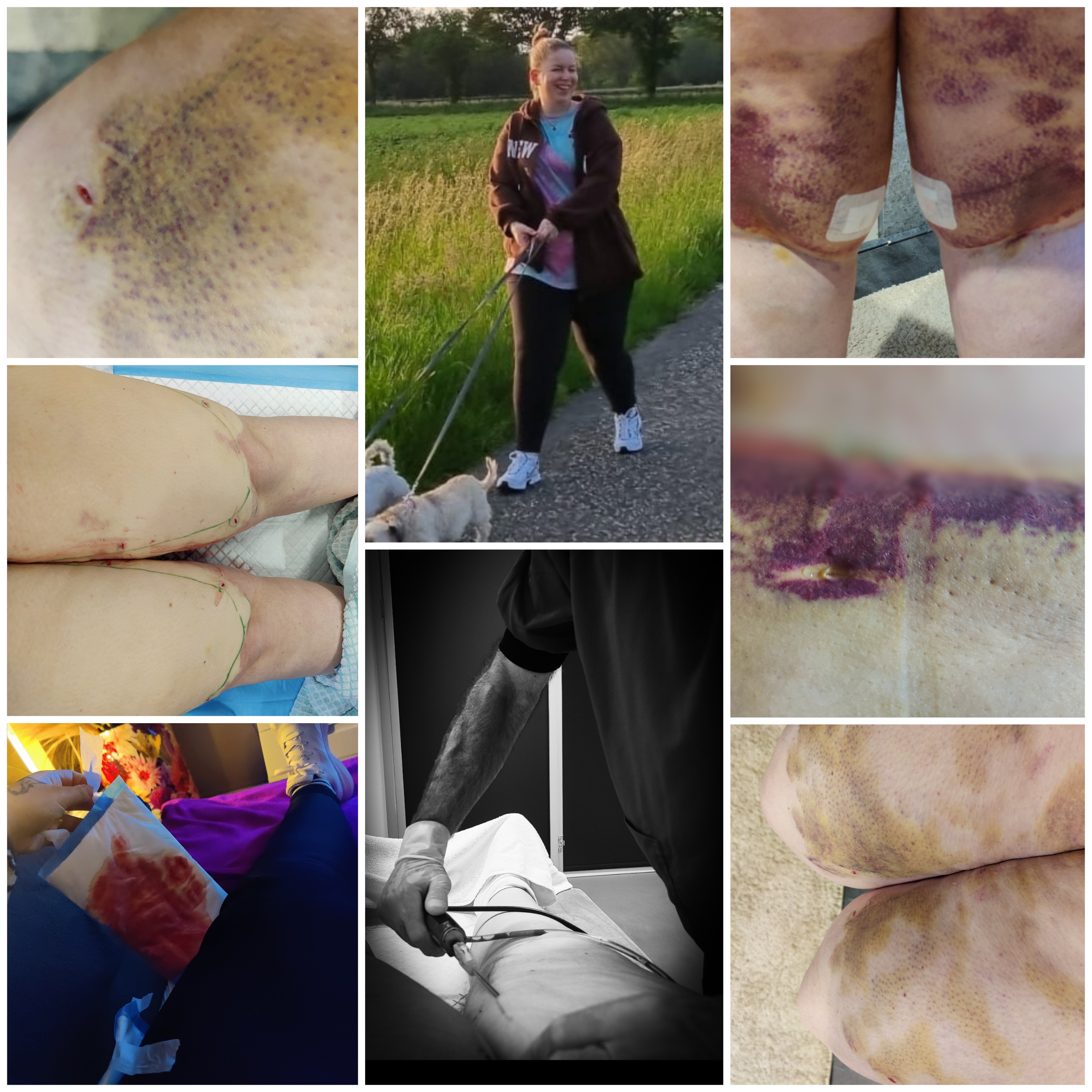 Vervolgens na de liposuctie die je dus heel bewust mee krijgt worden de incisies niet gehecht omdat het achtergebleven vloeistof zoveel mogelijk weer uit jouw wonden mogen lekken aangezien je lijf het al veel moeilijker af kan voeren dan bij een "gezond" mens.