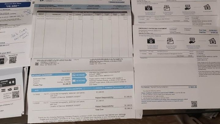 So, now two surgery bills, two ER trips, two ambo bills, two CT scans (over $5000 each), two anesthesia bills, two nights stay