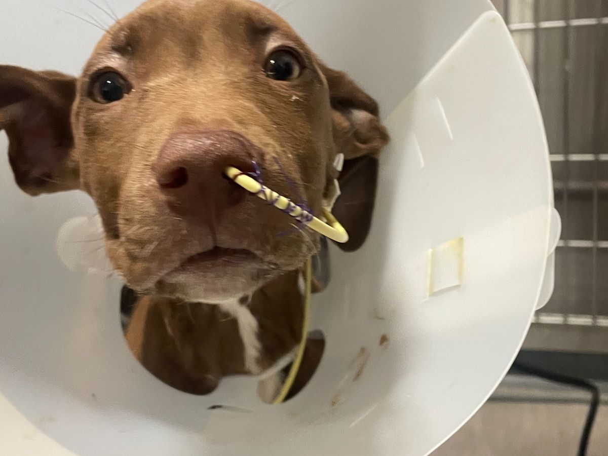 They told us that treatment would cost $1,300 daily and that she would need to be there for several days, but all we heard was that they could save our puppy. Today is day six and she may need 4 or 5 more days of treatment. We don't know how much longer we can keep her there, and I can't let my wife bring her new puppy home to watch her die because we didn't have the money for another night. I love my wife. She has hospiced for two family members and seen more than her share of death. I can't let this puppy die. Even a few dollars could help us get Fred one more night in the hospital. Please help us save this dog.