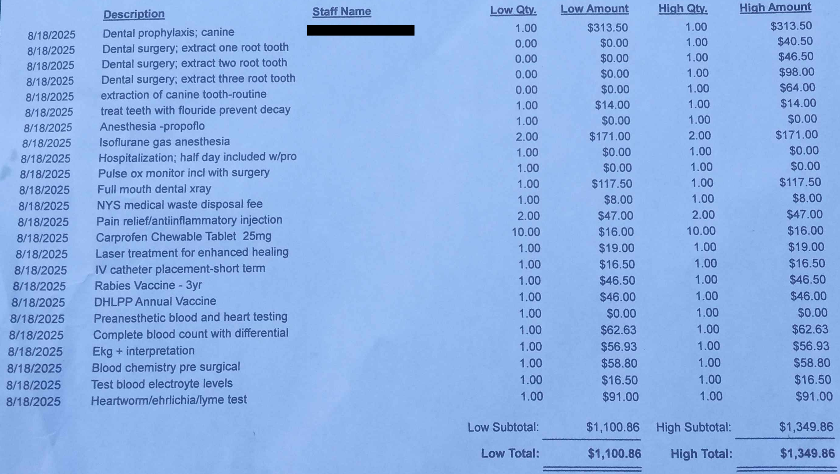 I'm a concerned pet owner/parent looking for assistance to ensure my dog Freddy can get the medical help he needs for a possible spreading infection that has started in a tooth. I have looked up an estimate of expenses to look like the following...