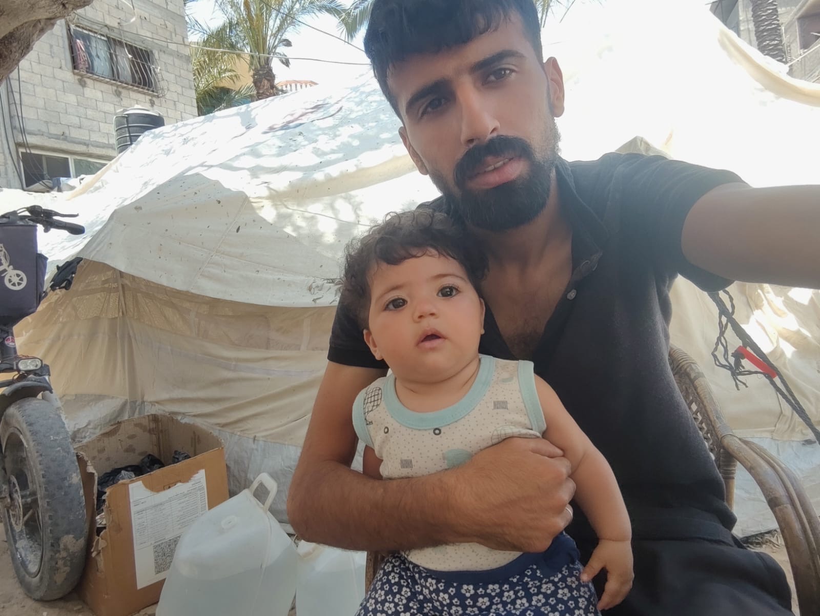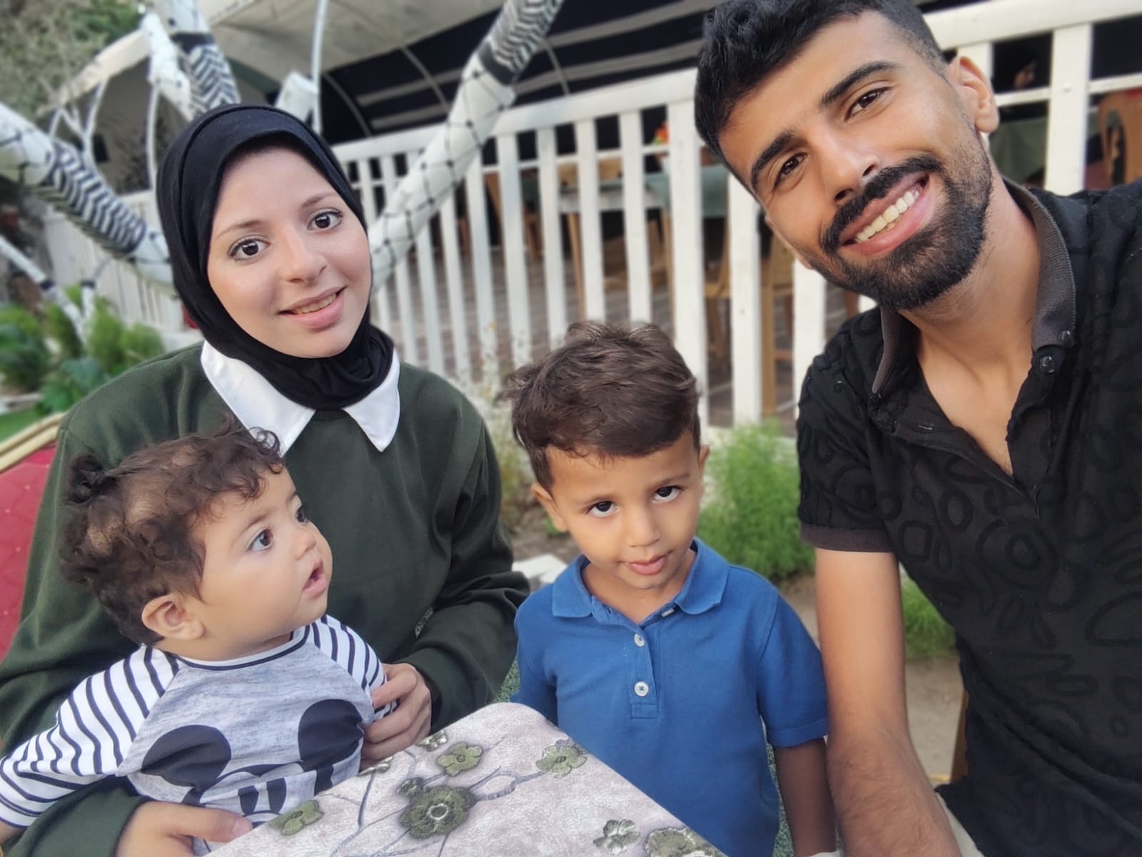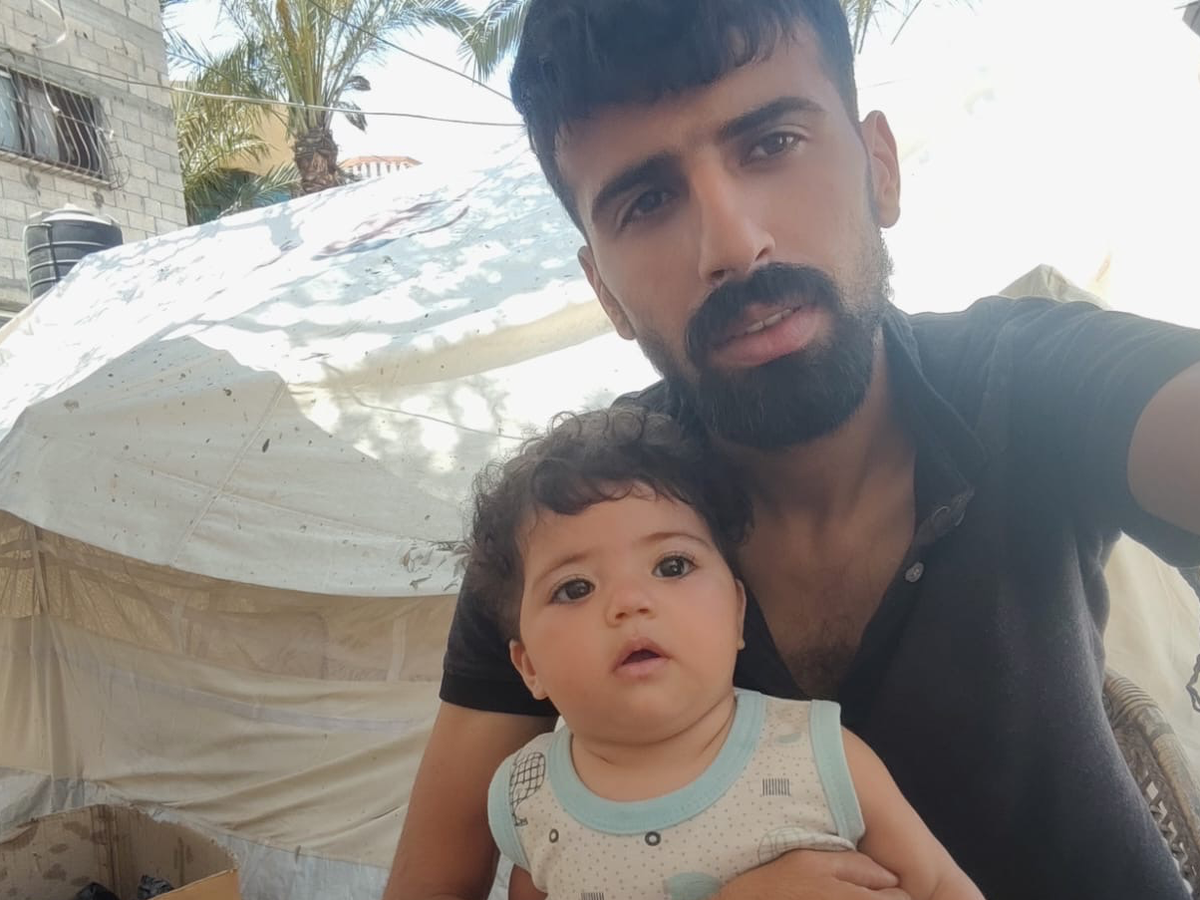 My name is Ahmed . Before October 7, I worked as a designer. I had a peaceful life and worked hard to build a small home filled with love. I married the woman my heart chose, and together we had two beautiful children: Wajih and Mila.